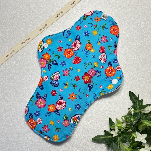 布ナプキン 防水レギュラー 24cmおりもの〜生理、尿モレにも 和柄 琉球 沖縄 南国 貝殻 花柄フラワー スカイブルー
