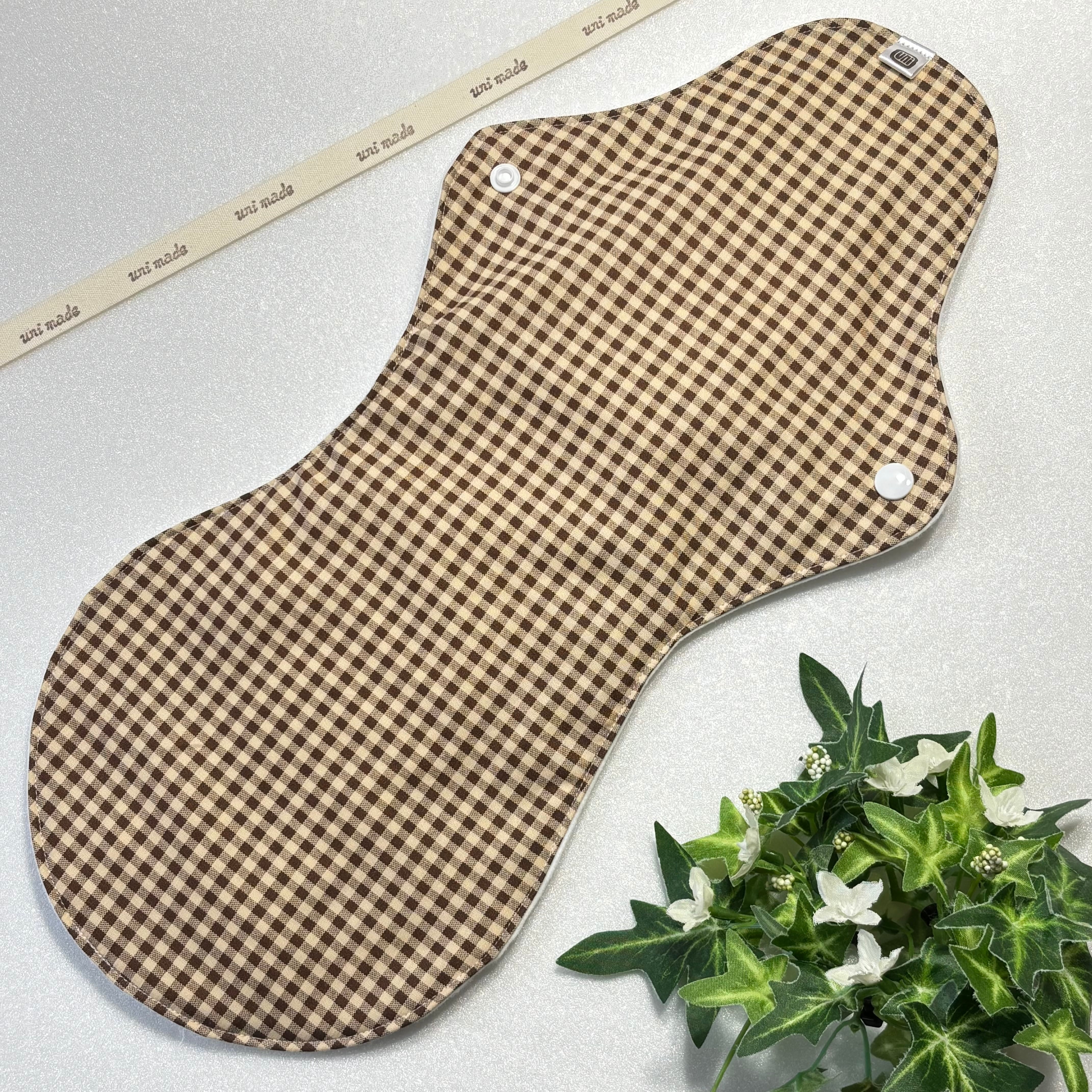 布ナプキン 防水超ロング 40cm おりもの〜多い日の夜まで シンプル ギンガム チェック ブラウン