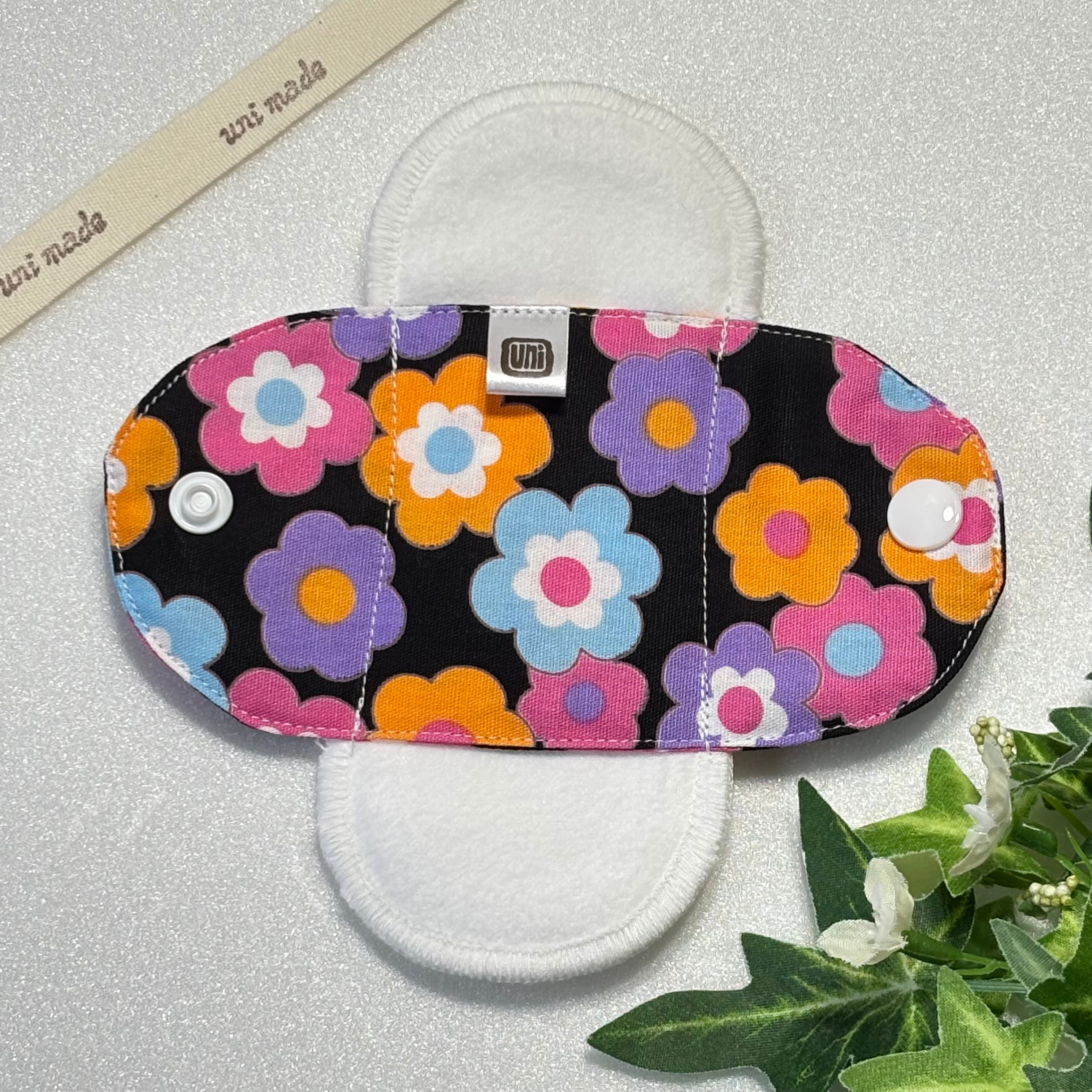 布ナプキン おりもの 温活 パンティライナー 15cm ポップフラワー 黒地 花柄フラワー