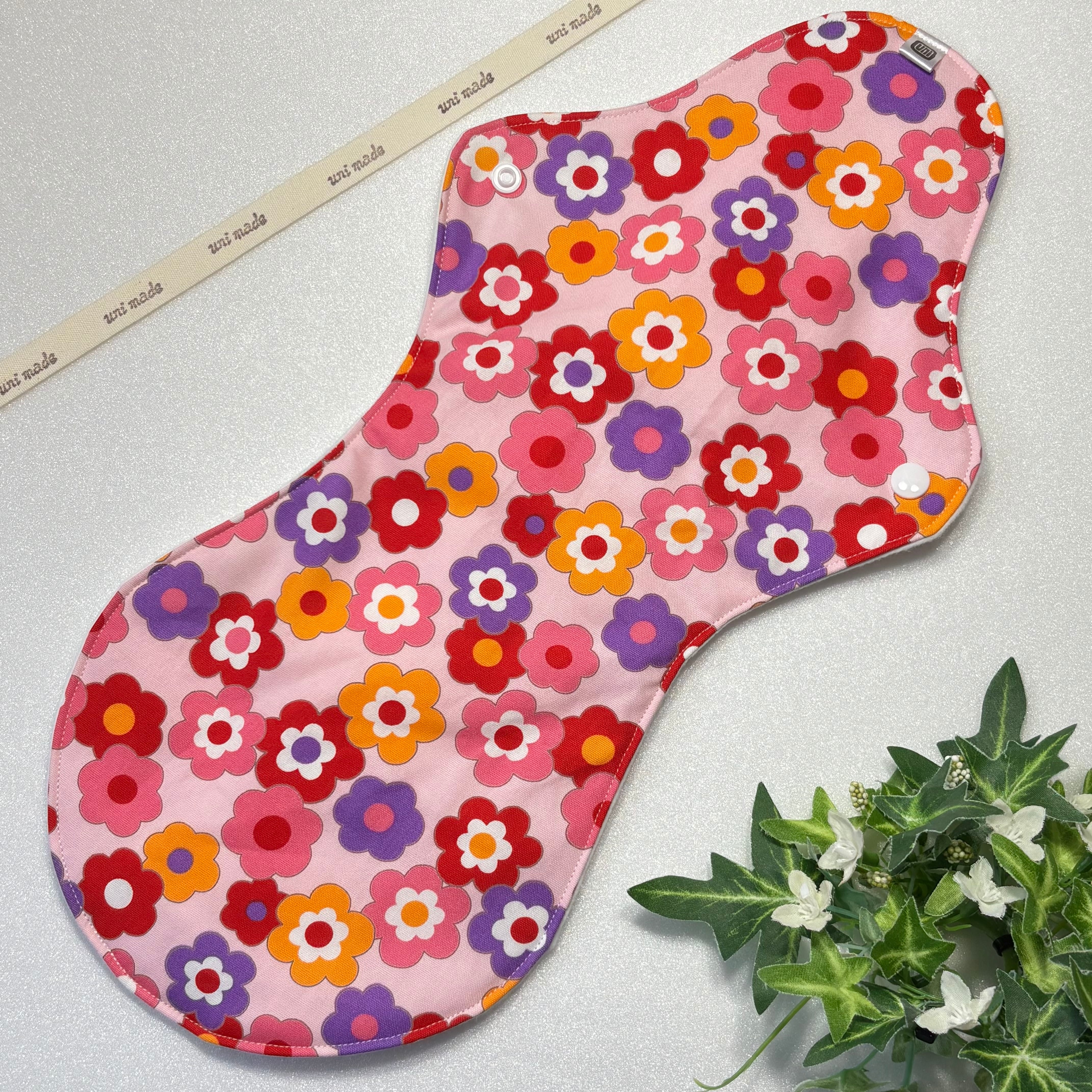 布ナプキン 防水超ロング 40cm おりもの〜多い日の夜まで ポップフラワー ピンク 花柄フラワー
