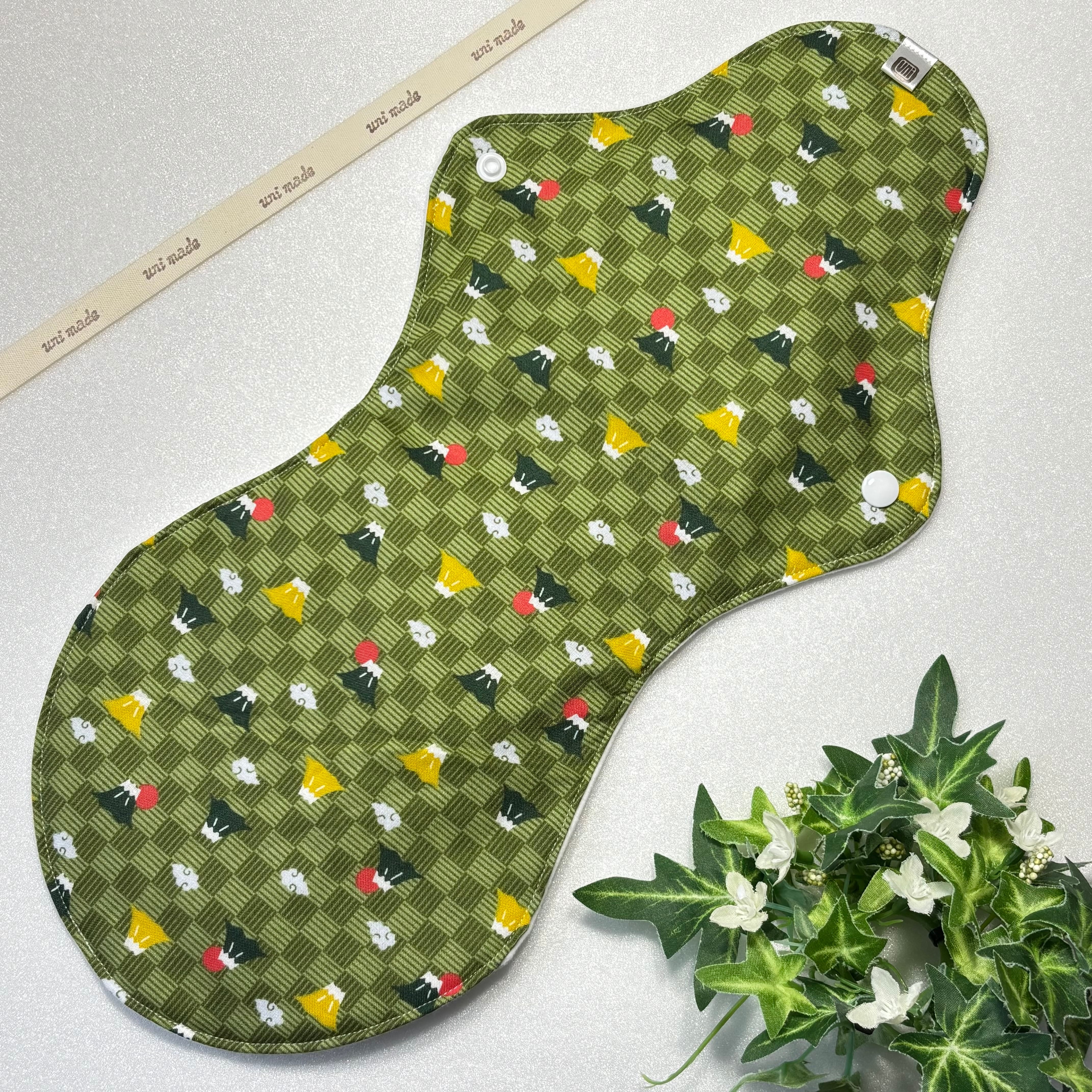 布ナプキン 防水超ロング 40cm おりもの〜多い日の夜まで 和柄 縁起物 富士山と太陽 格子 抹茶グリーン