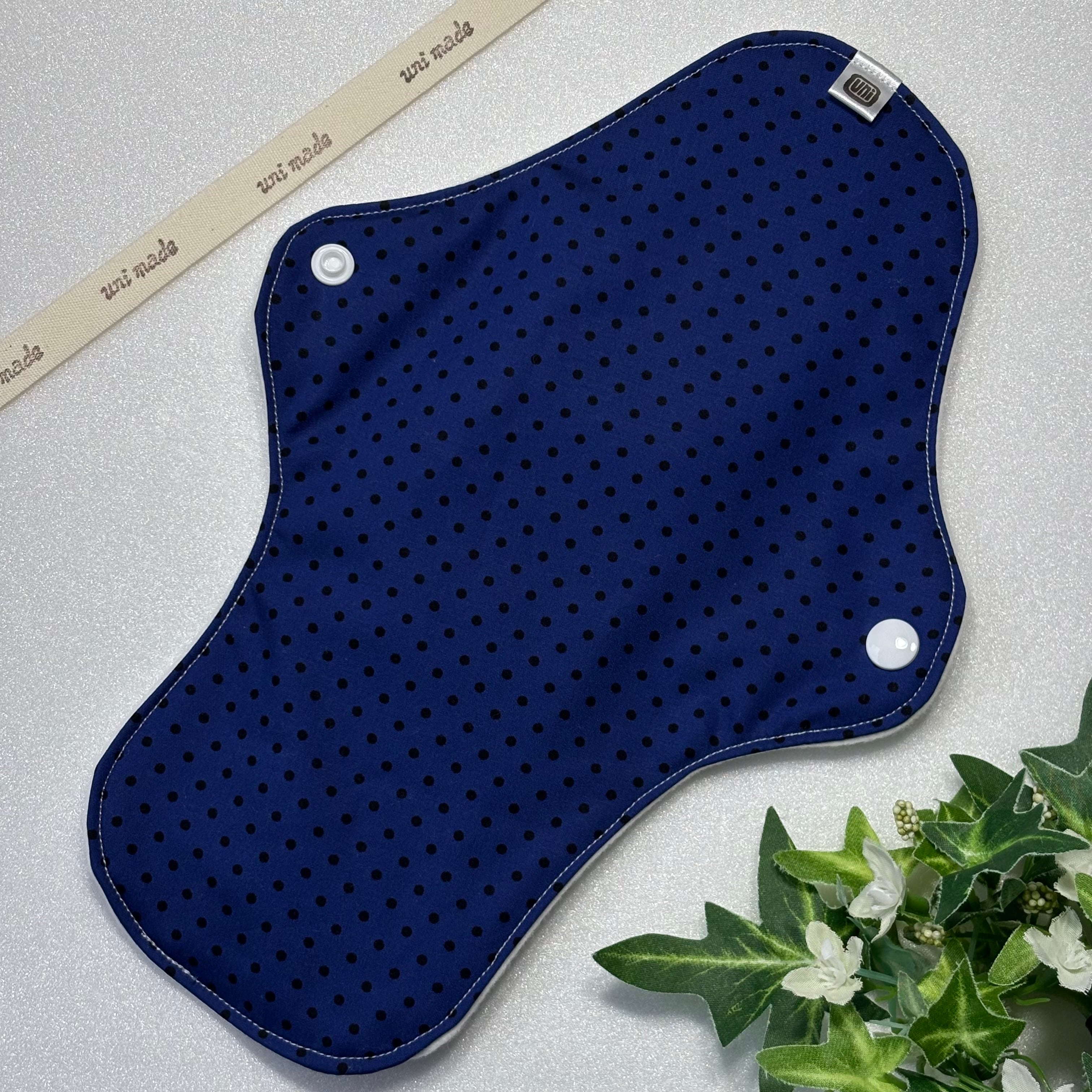 布ナプキン 防水ロング 28cm おりもの〜 多い日、尿もれにも シンプルドット柄 濃青 黒玉
