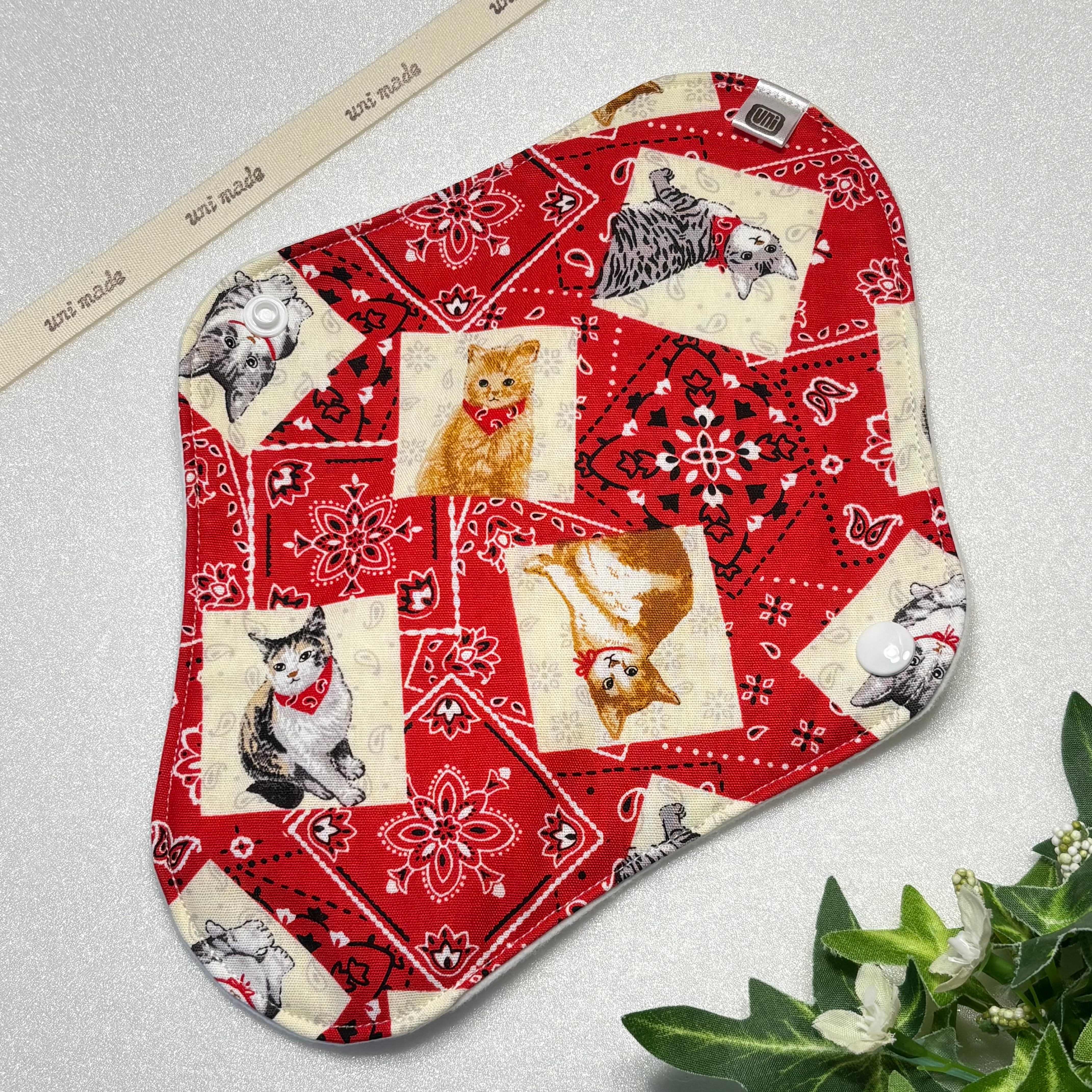 布ナプキン 防水レギュラー 24cmおりもの〜生理、尿モレにも バンダナネコ 猫 パワーレッド