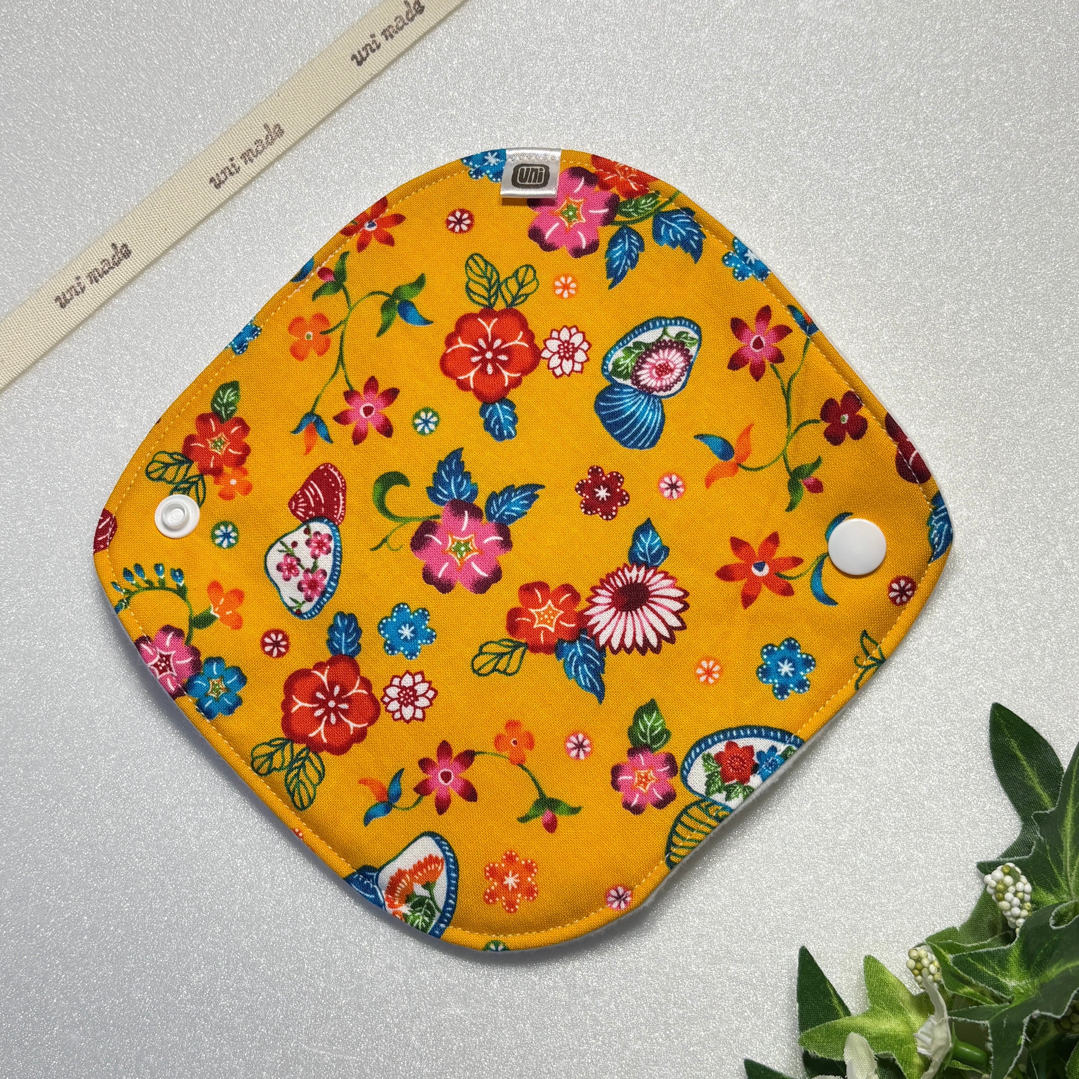 布ナプキン 防水S18cm 軽い日、尿モレ おりものにも 和柄 琉球 沖縄 貝殻 南国 花柄フラワー オレンジ系