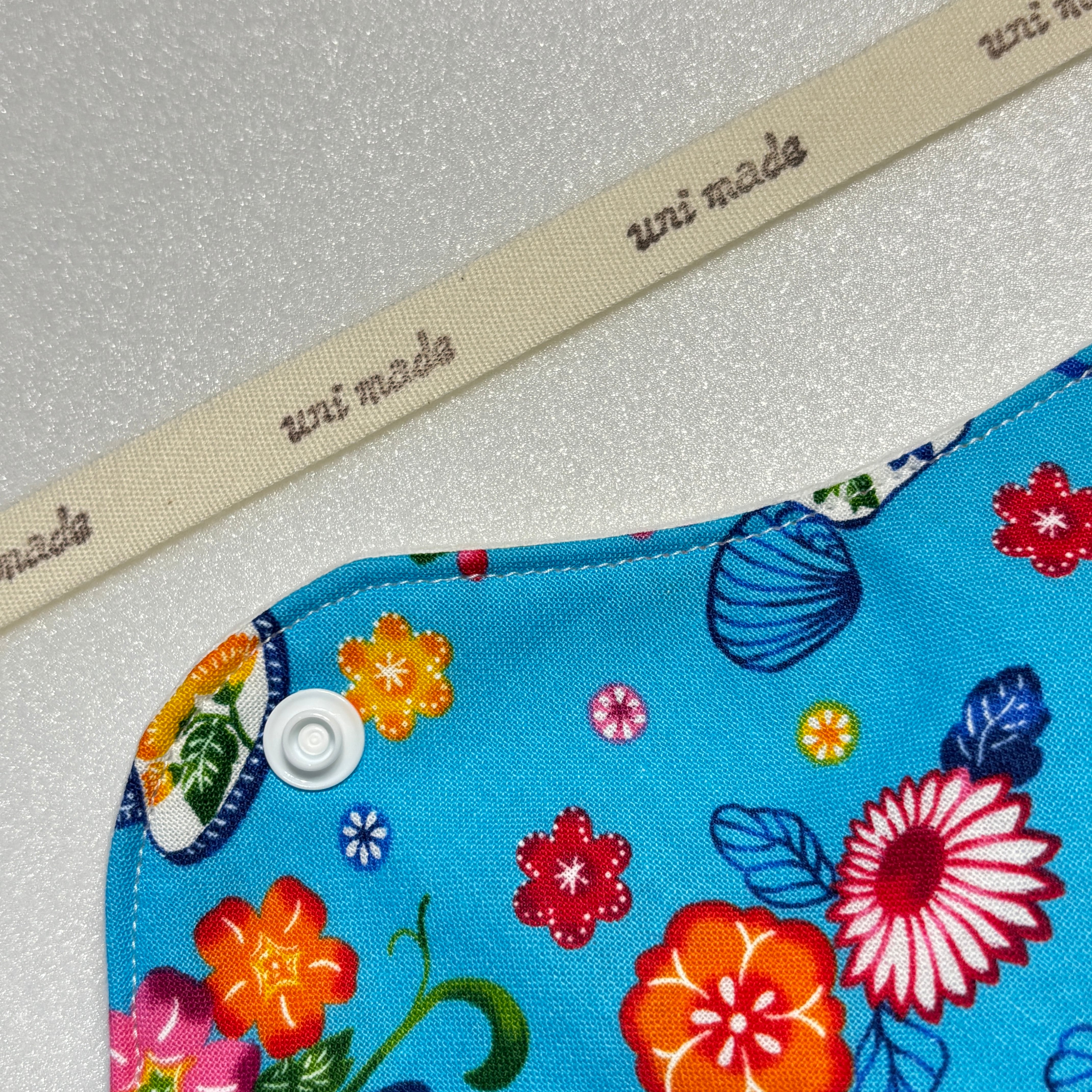 布ナプキン 防水ロング 28cm おりもの〜 多い日、尿もれにも 和柄 琉球 沖縄 貝殻 南国 花柄フラワー スカイブルー