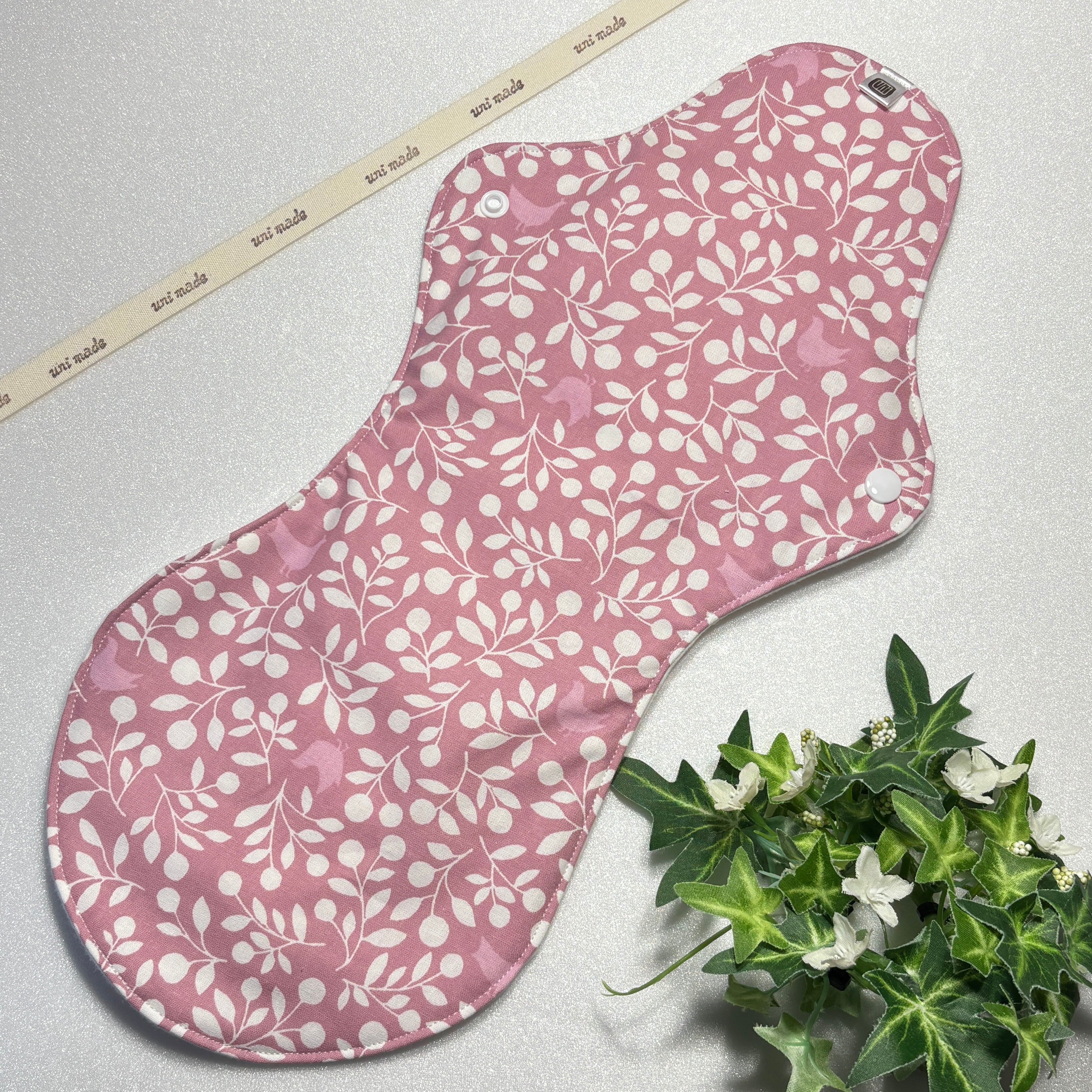 布ナプキン 防水超ロング 40cm おりもの〜多い日の夜まで 温活 妊活 鳥さんとリーフ ボタニカル くすみピンク系