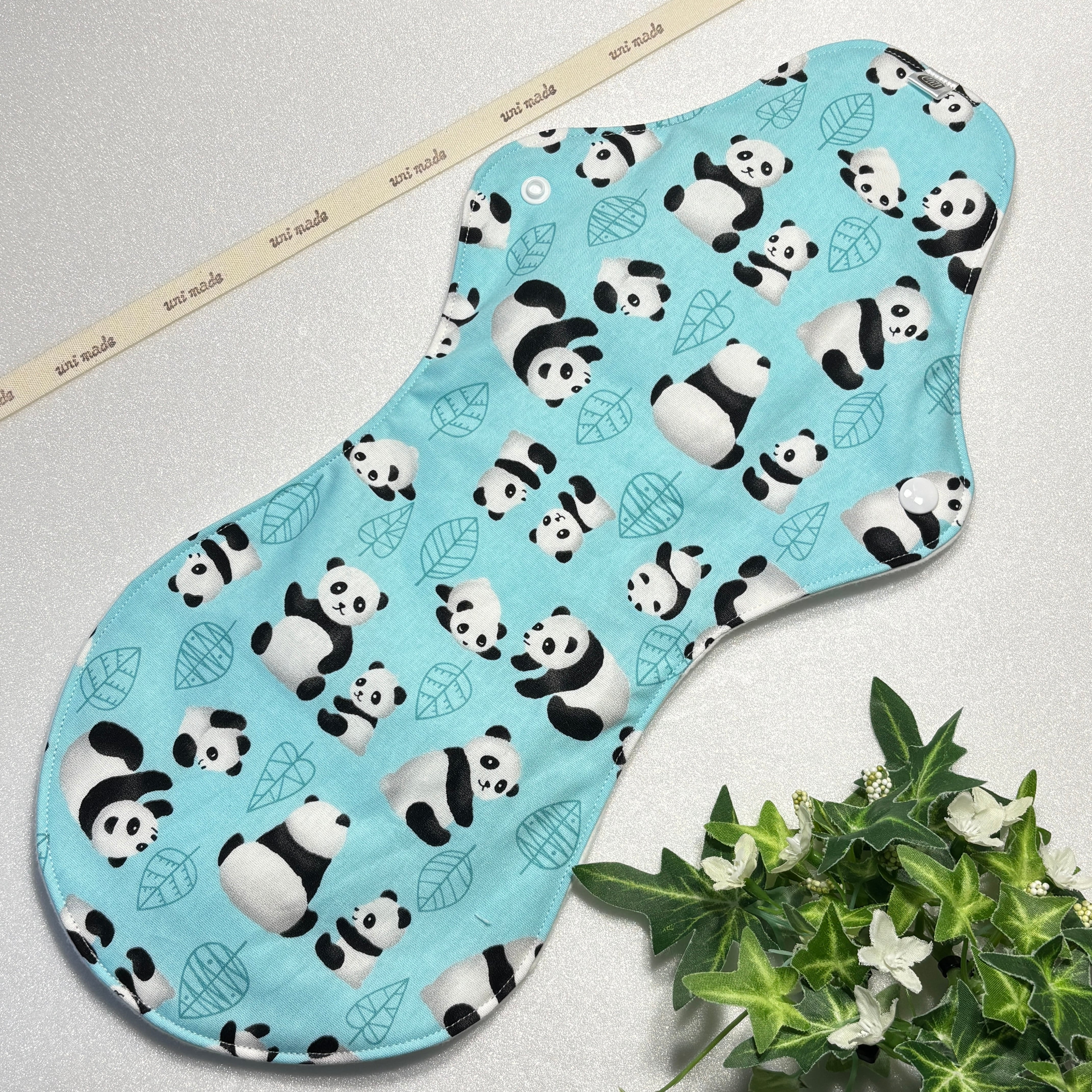 布ナプキン 防水超ロング 40cm おりもの〜多い日の夜まで 温活 妊活 パンダとリーフ アニマル ブルー系