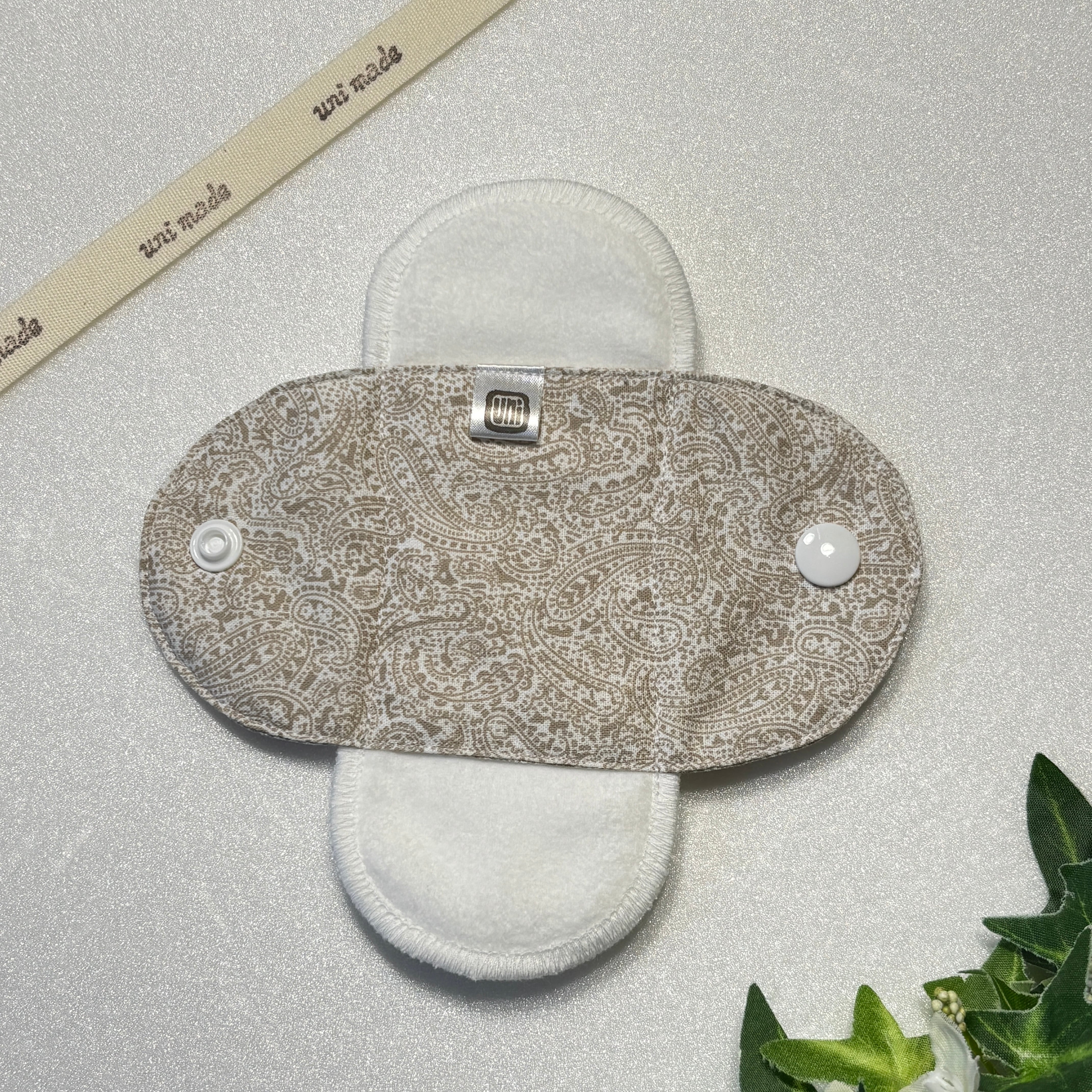 布ナプキン おりもの〜終わりかけ 温活 妊活 パンティライナー 15cm 幸せはこぶペイズリー シンプル ベージュ系