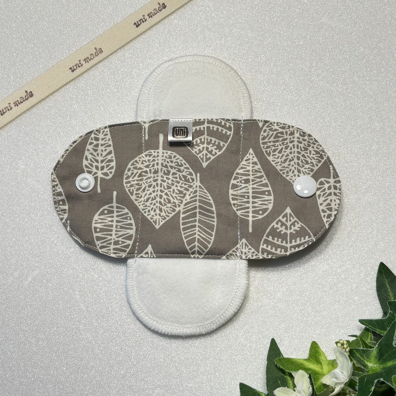 布ナプキン おりもの〜終わりかけ 温活 妊活 パンティライナー 15cm リーフリーフ グレージュ系