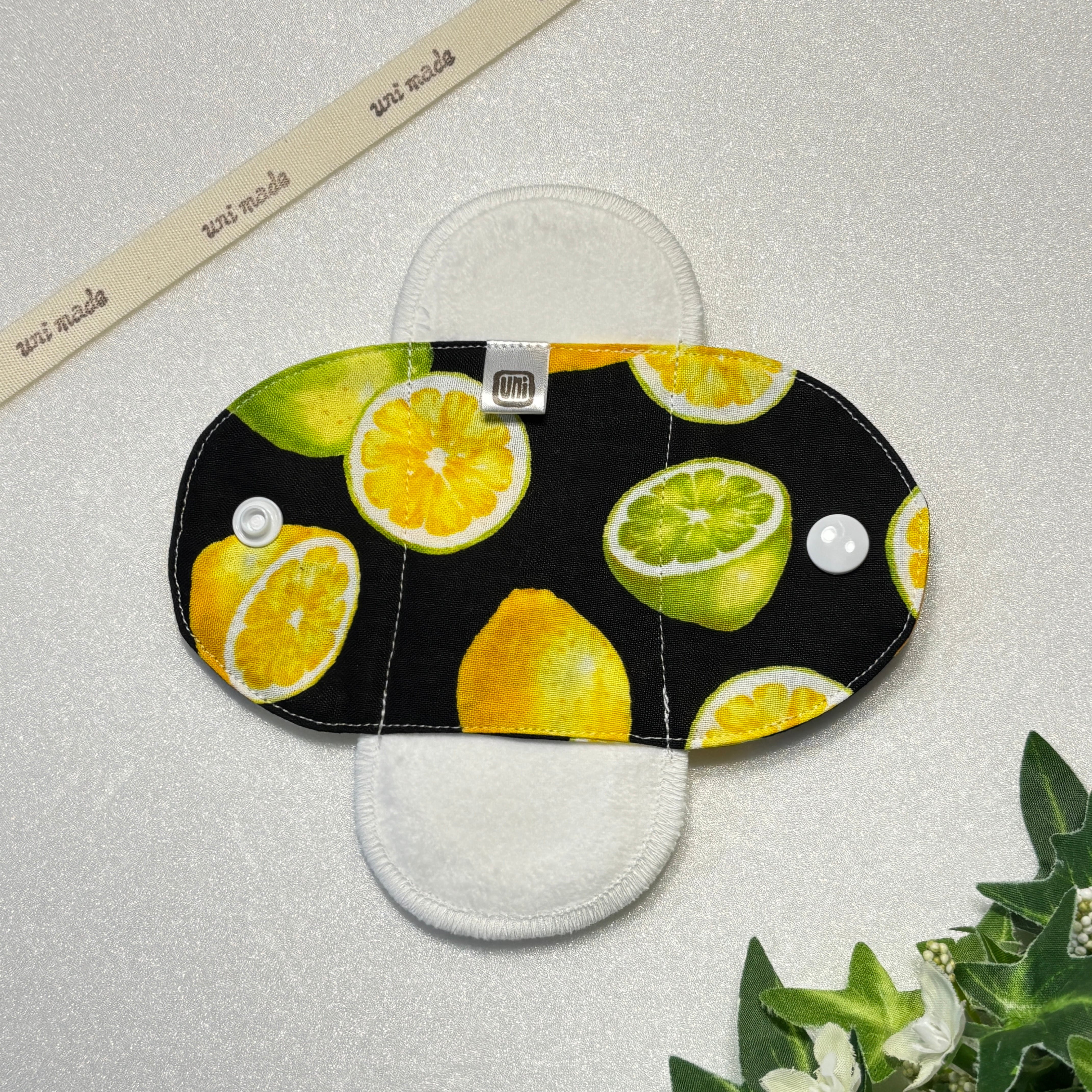 布ナプキン おりもの〜終わりかけ 温活 妊活 パンティライナー 15cm レモンライム フルーツ 黒 ブラック