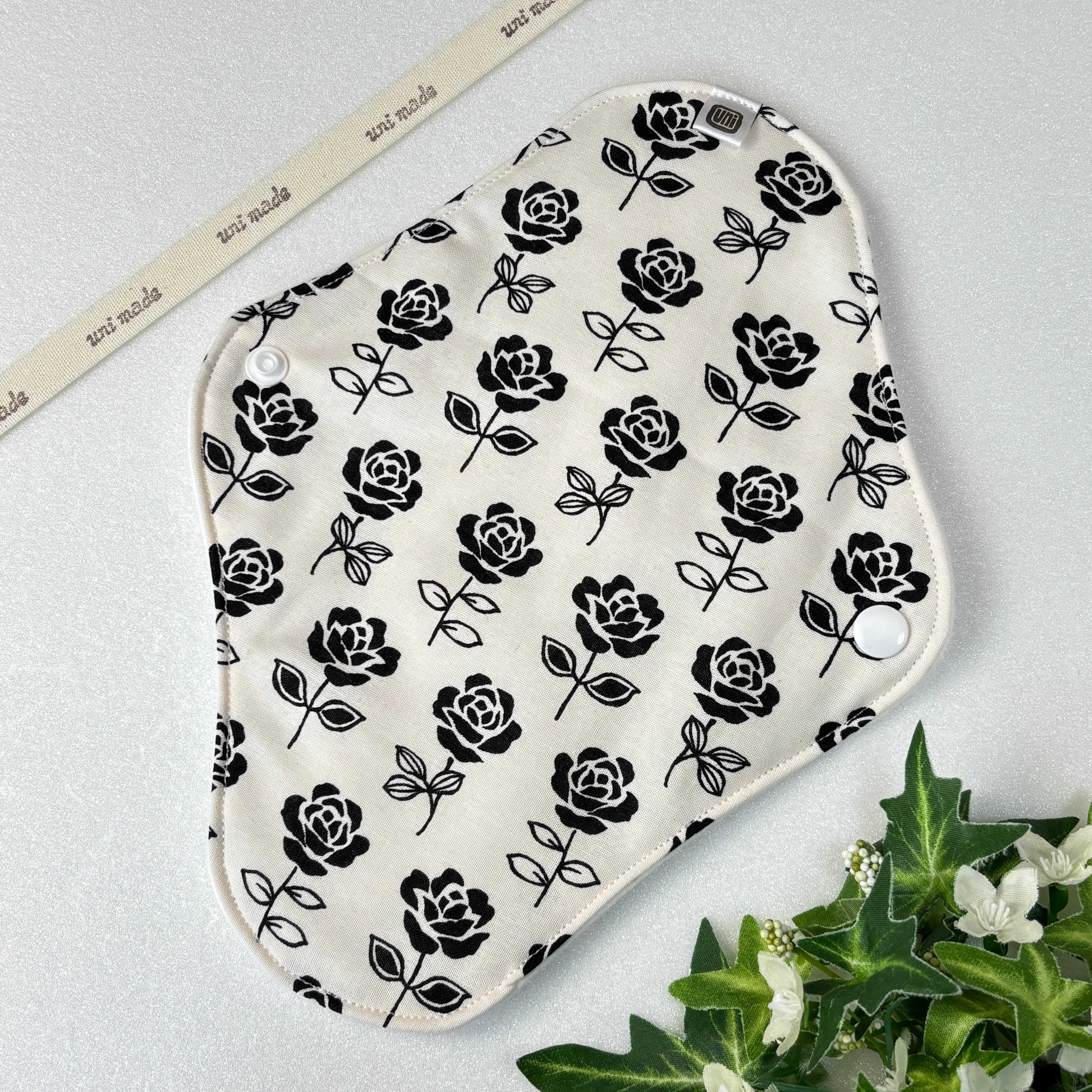 布ナプキン 防水レギュラー 24cmおりもの〜生理、尿モレにも 温活 妊活 バラ ローズ モノトーン 花柄フラワー