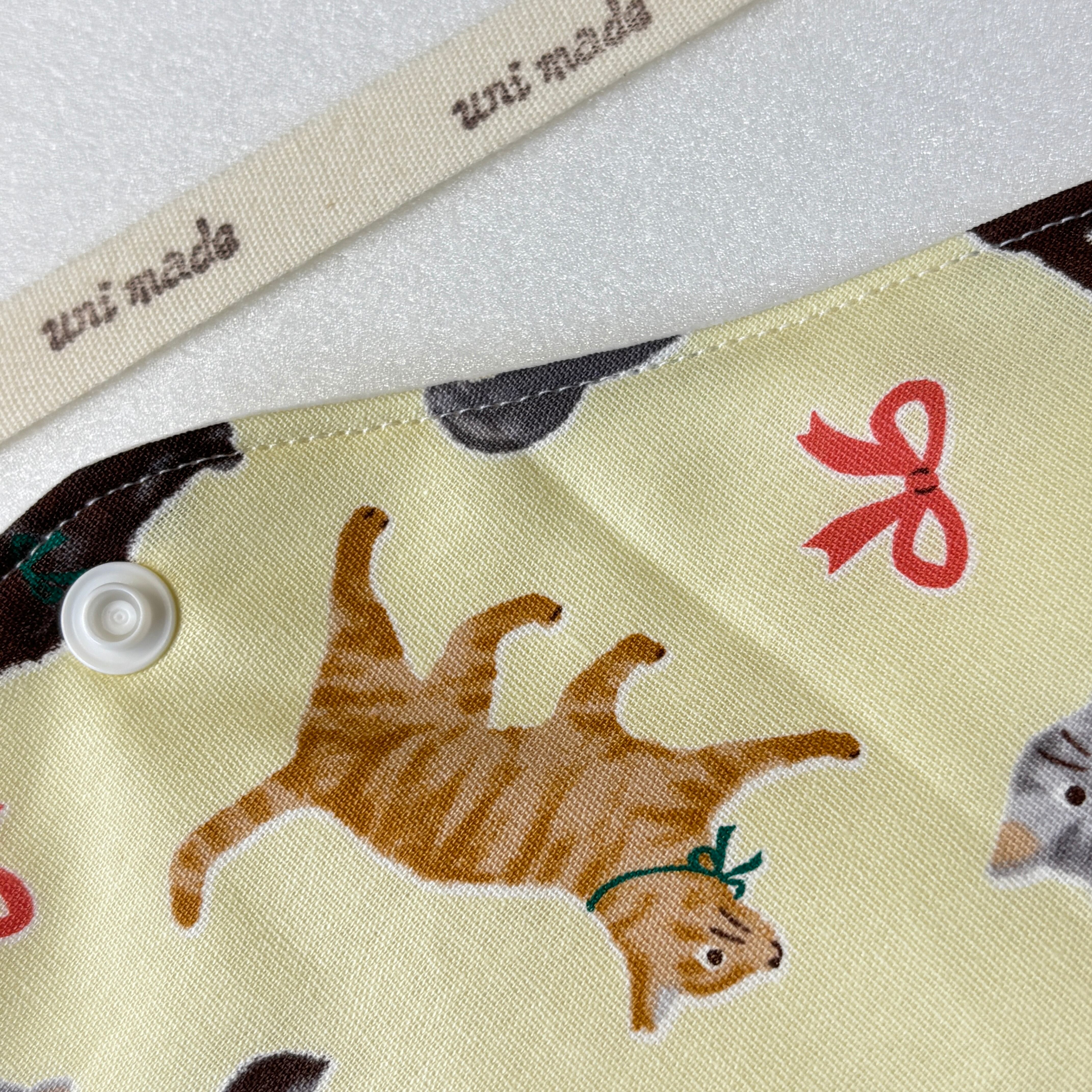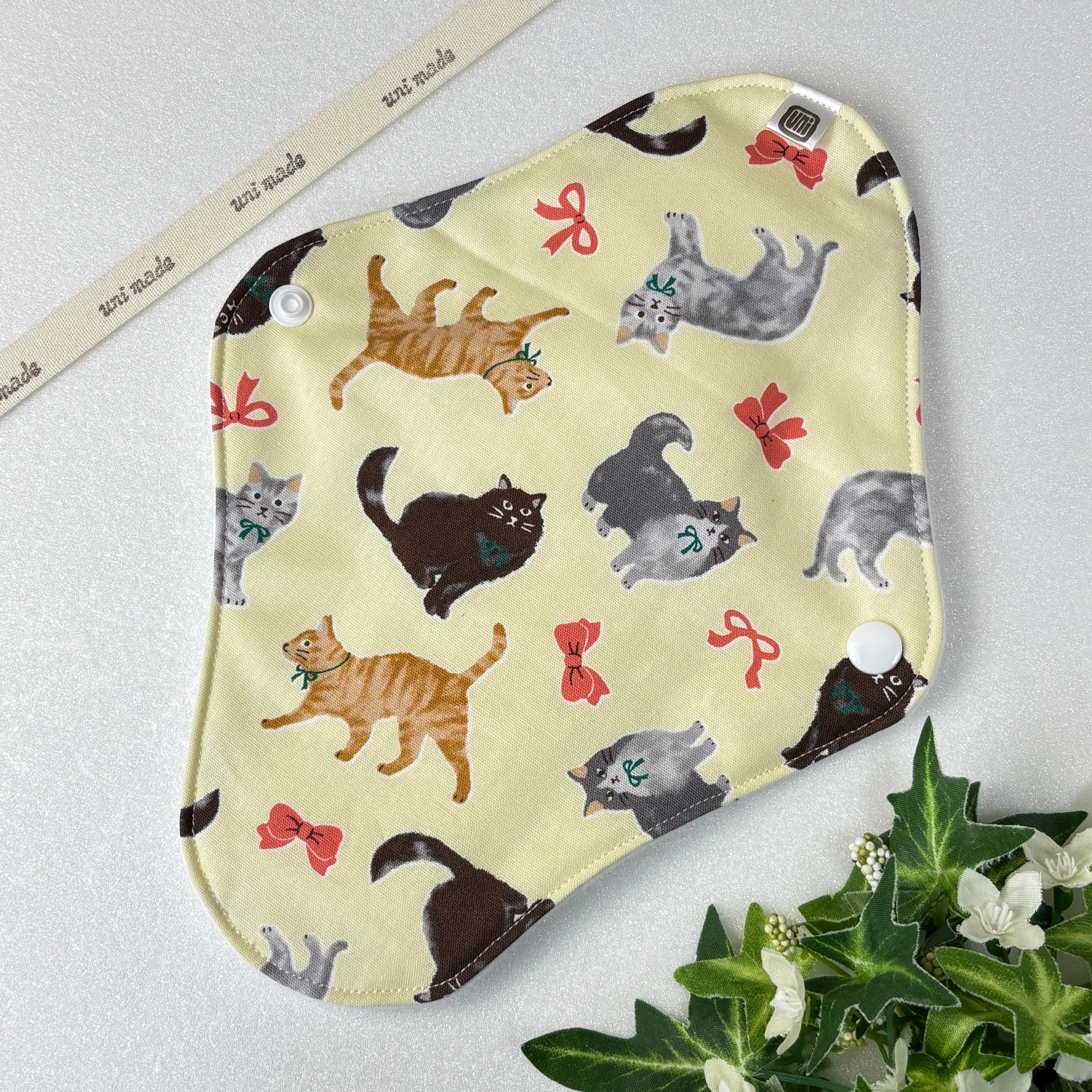 布ナプキン 防水レギュラー 24cmおりもの〜生理、尿モレにも 温活 妊活 リボン猫 ネコ アニマル 黄色 イエロー系
