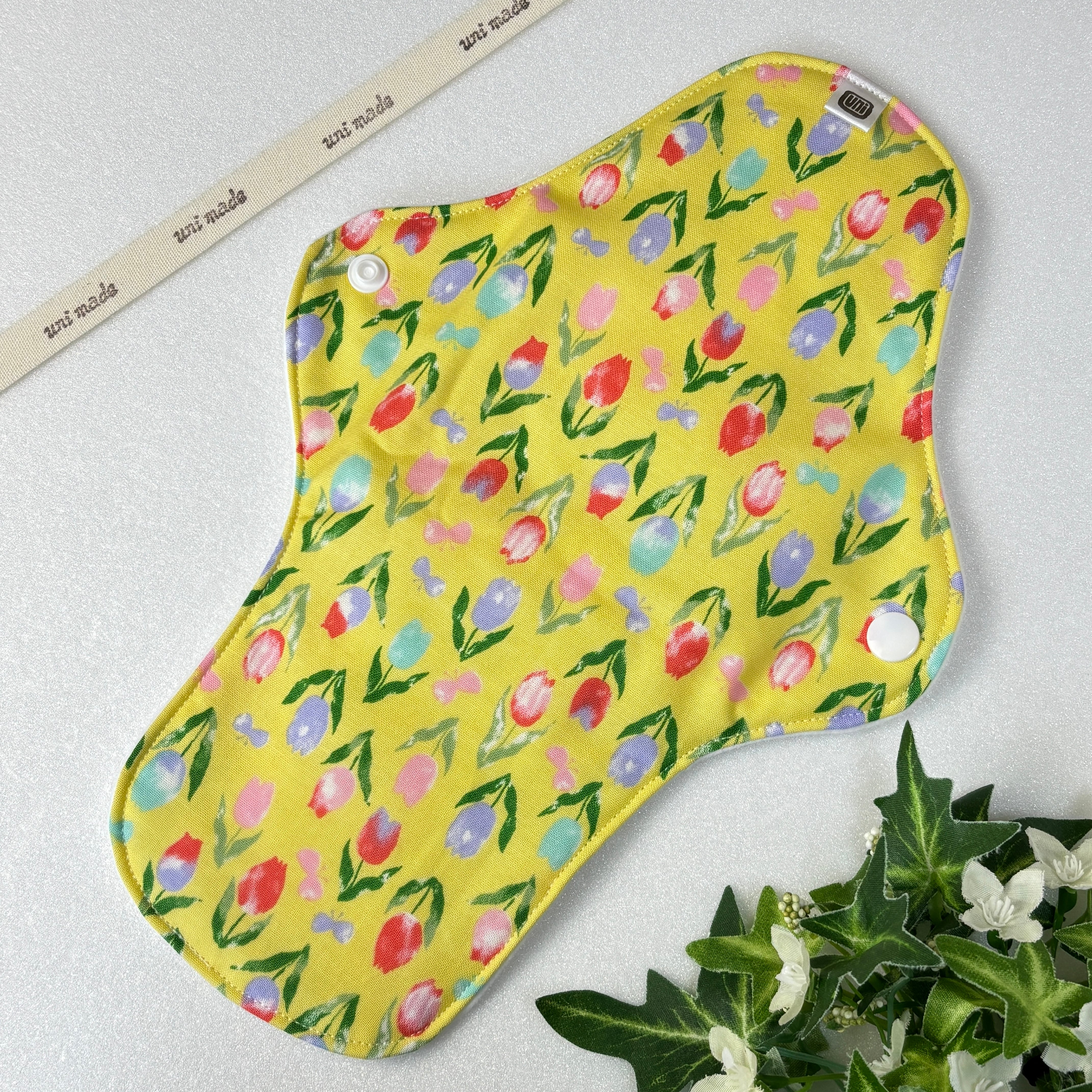 布ナプキン 防水ロング 28cm おりもの〜 多い日、尿もれにも 温活 妊活 チューリップ 花柄フラワー 黄色 イエロー系