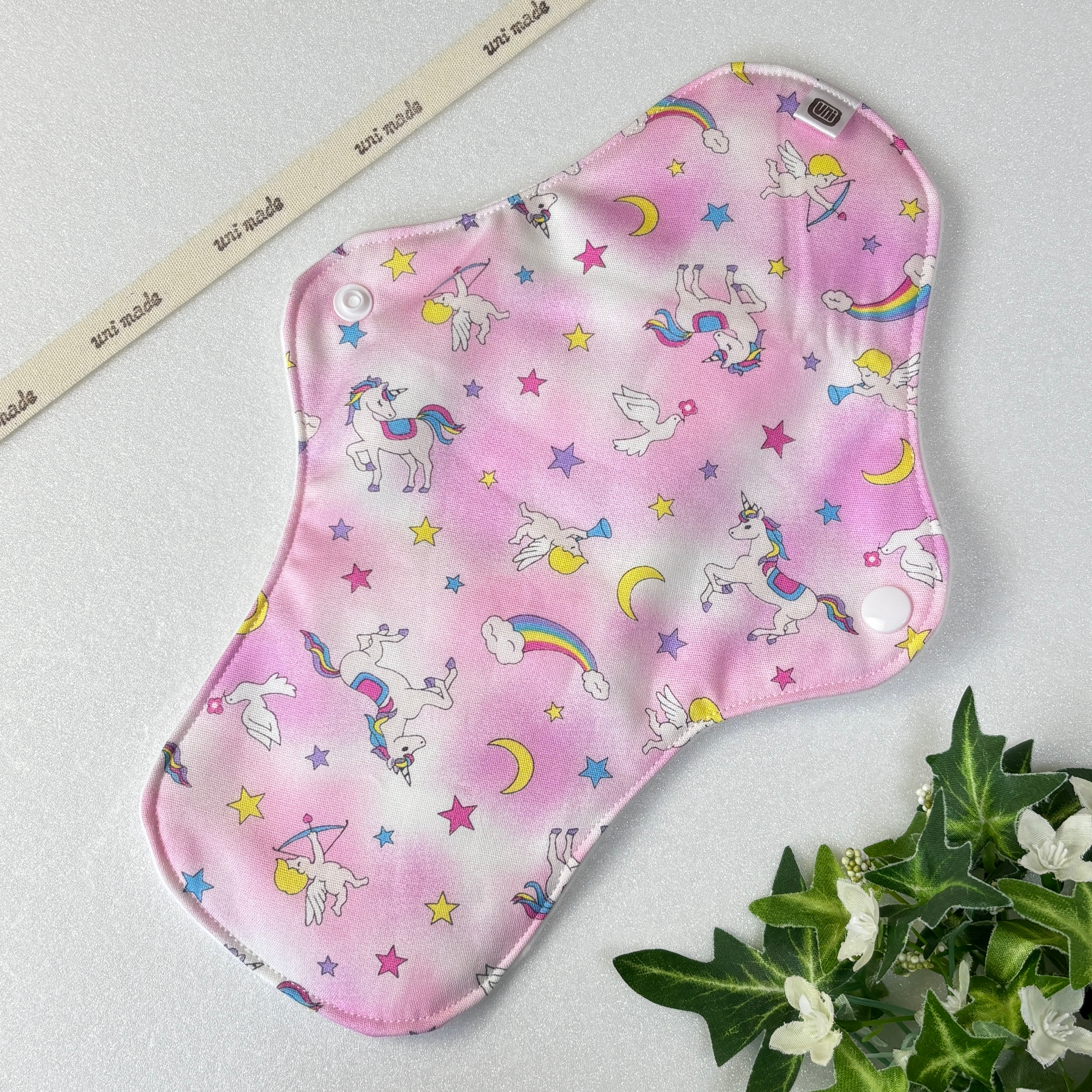 布ナプキン 防水ロング 28cm おりもの〜 多い日、尿もれにも 温活 妊活 天使とユニコーン アニマル 濃淡 ピンク系