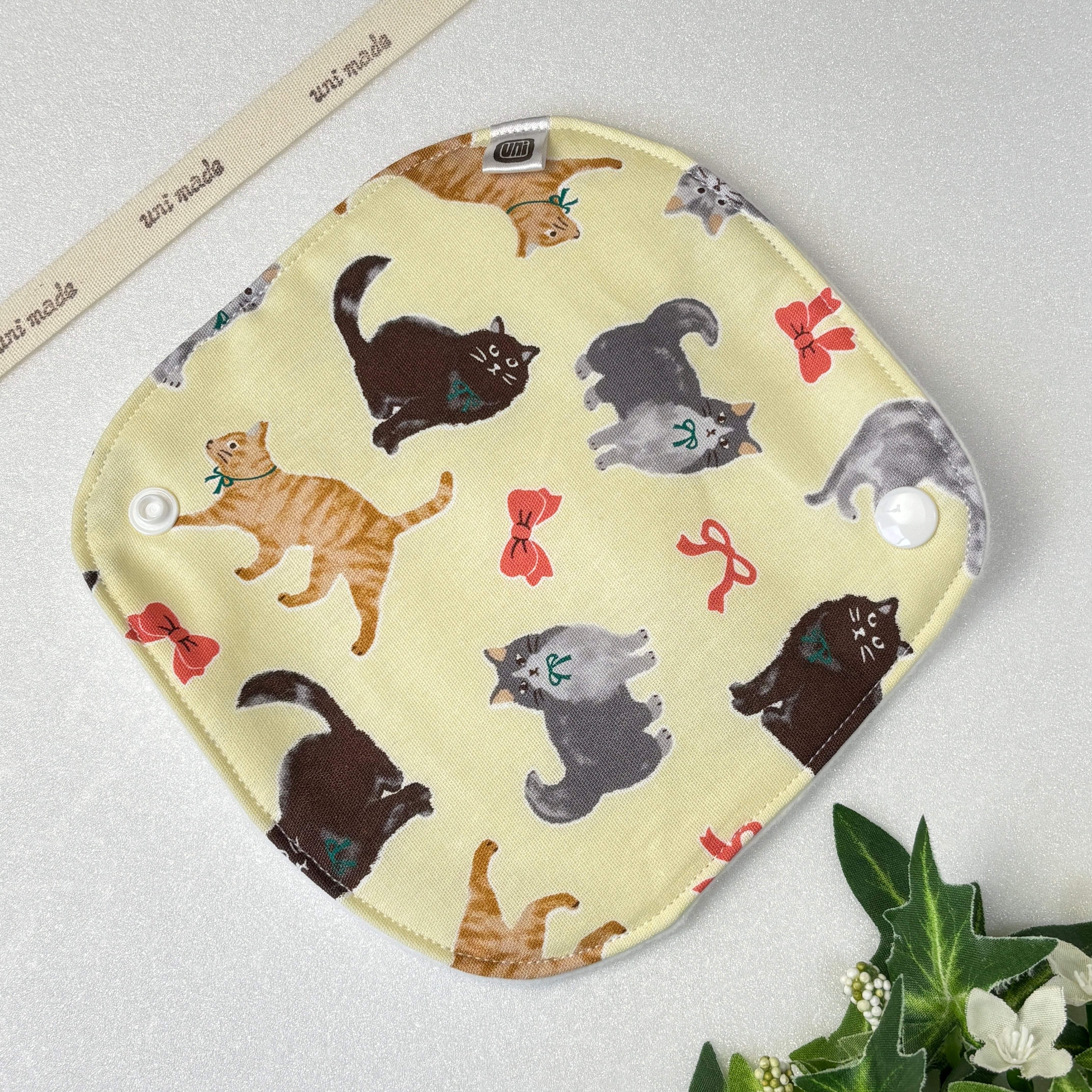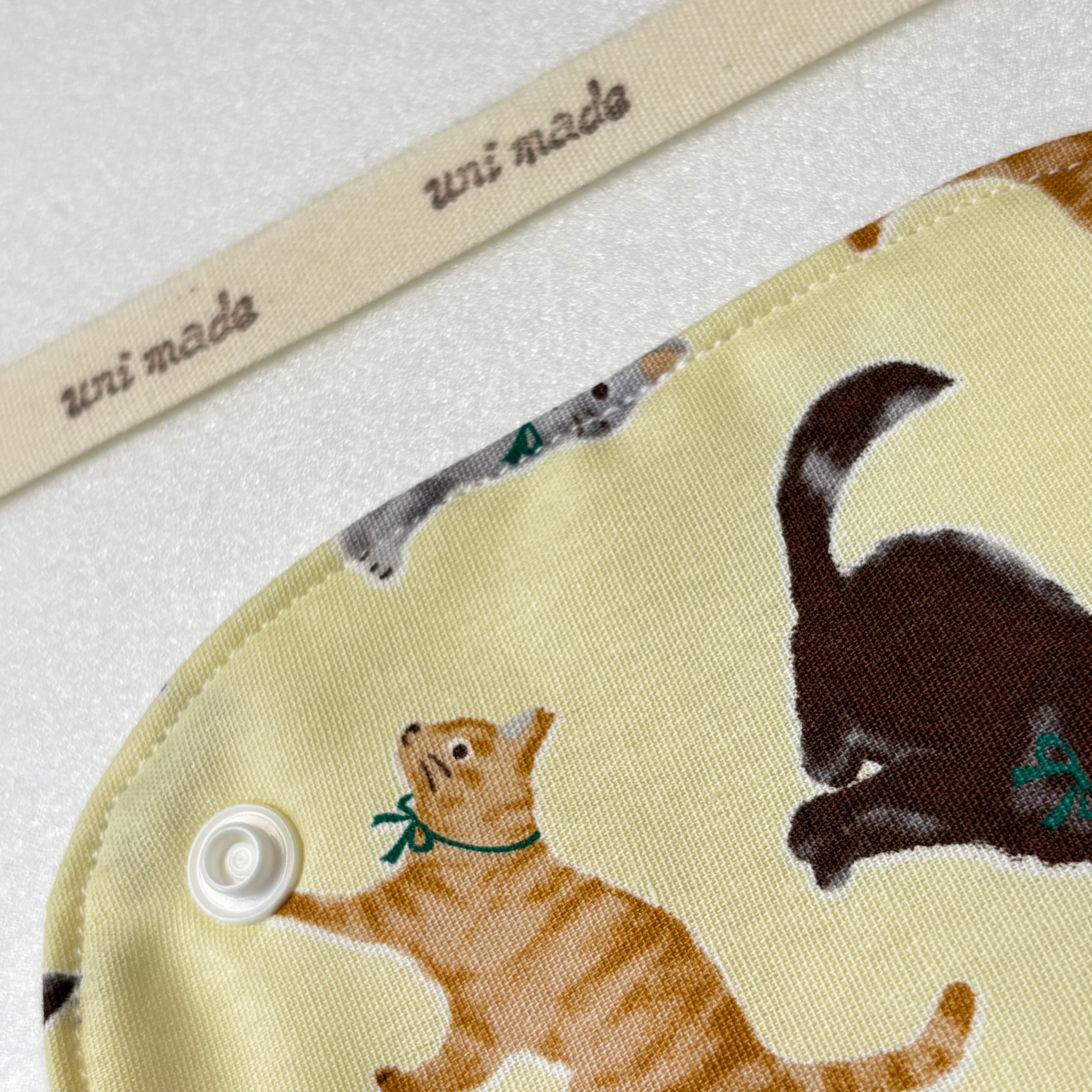 布ナプキン 防水S18cm 軽い日、尿モレ おりものにも 温活 妊活 リボン猫 ネコ アニマル 黄色 イエロー系