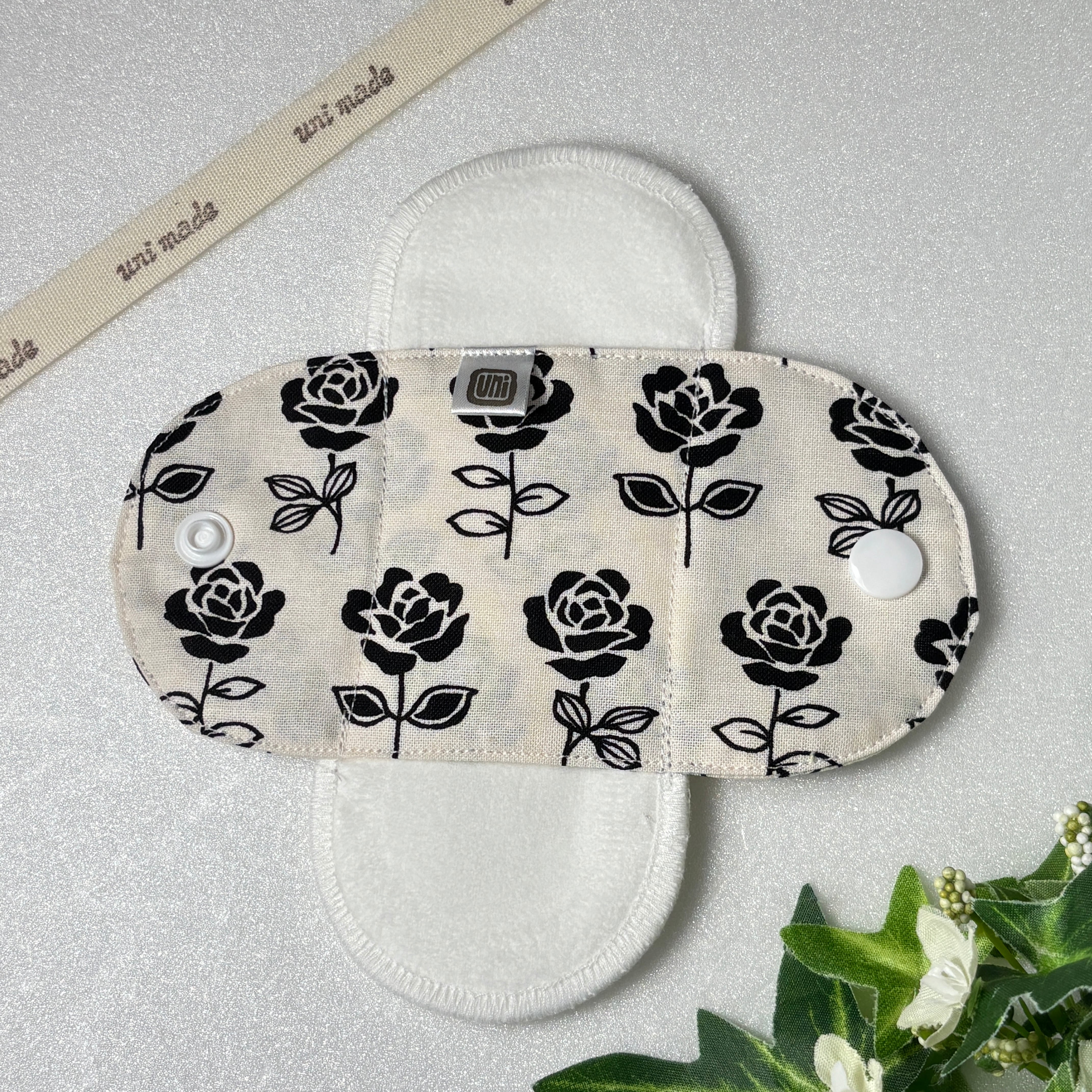 布ナプキン おりもの〜終わりかけ 温活 妊活 パンティライナー 15cm ローズ バラ 花柄フラワー モノトーン