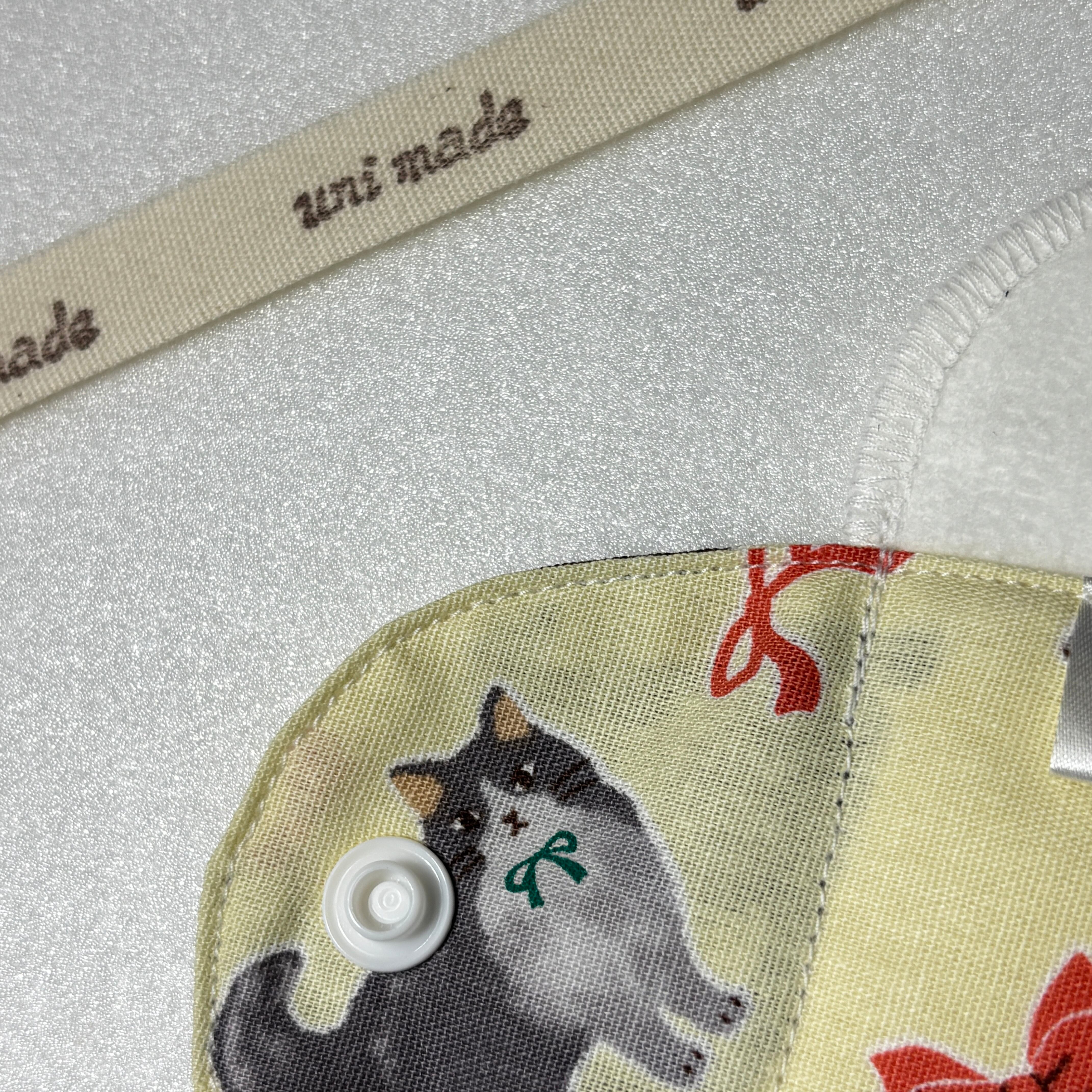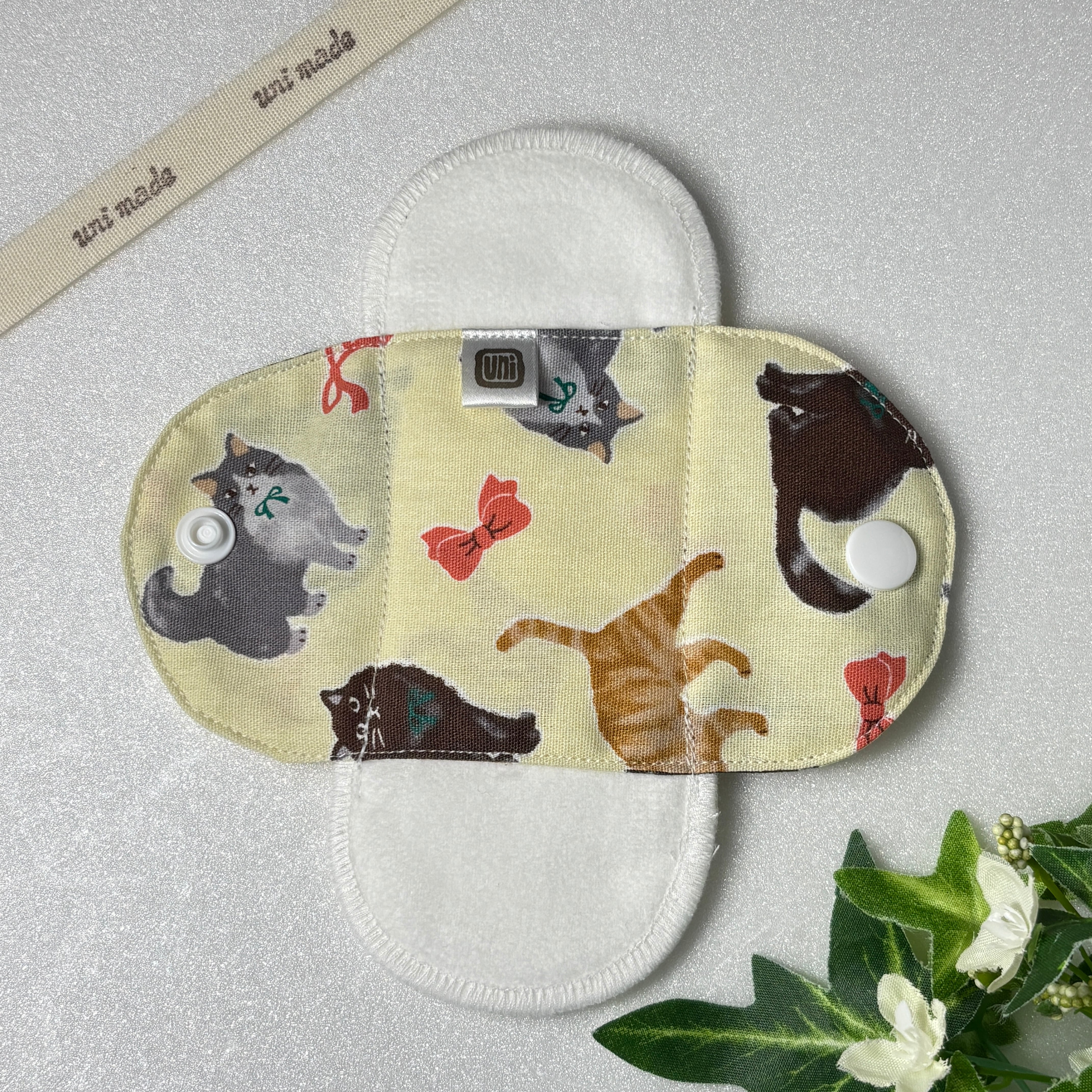 布ナプキン おりもの〜終わりかけ 温活 妊活 パンティライナー 15cm リボン猫 ネコ アニマル 黄色 イエロー系