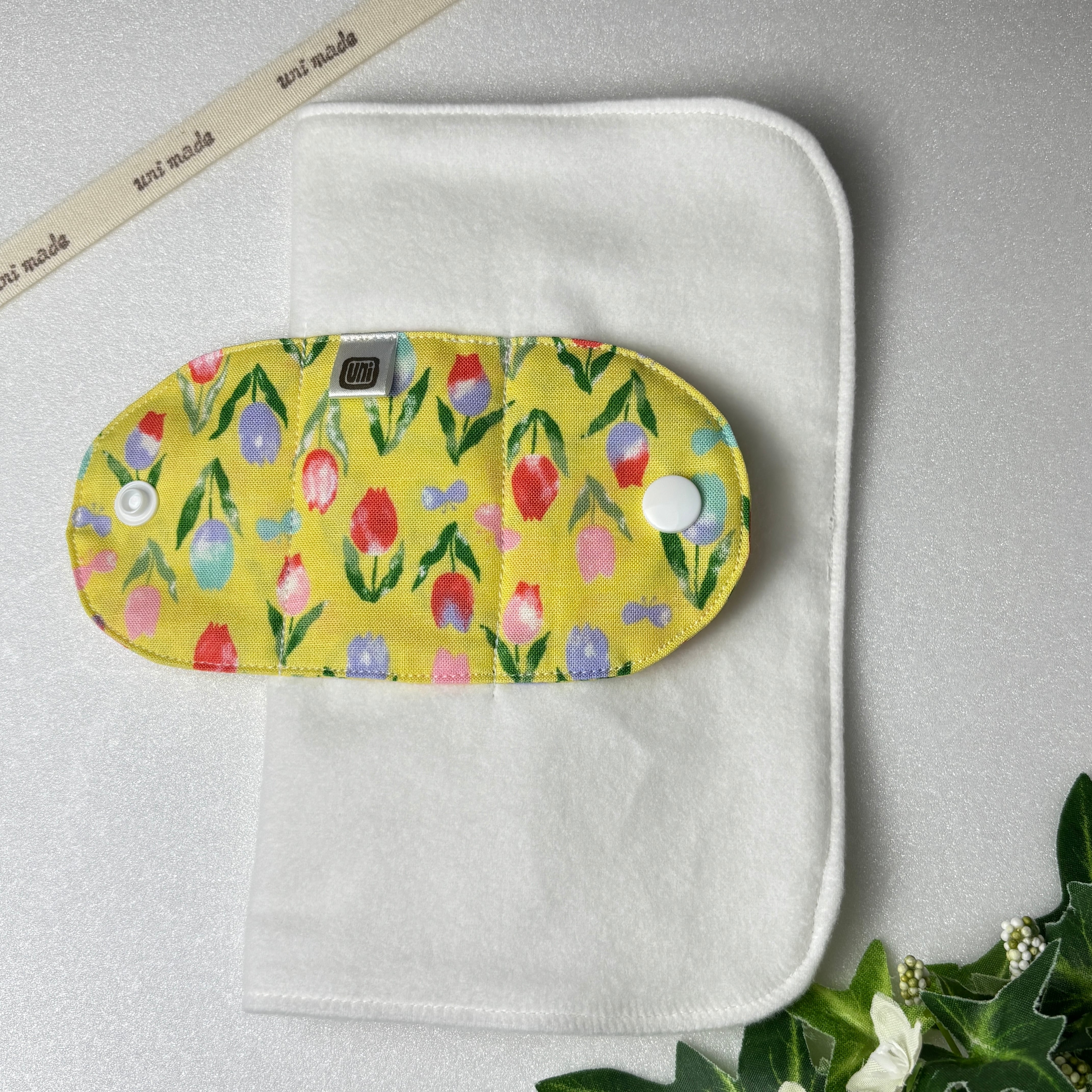布ナプキン 1枚で2回使える便利なパッチン19cm おりもの 生理の終わりかけ 温活 妊活 チューリップ 花柄フラワー 黄色 イエロー系