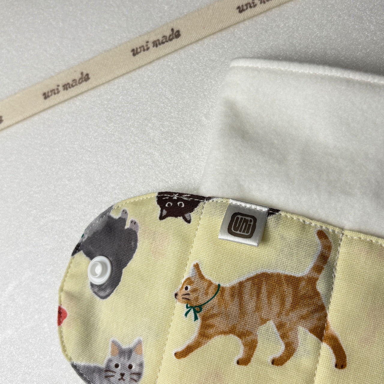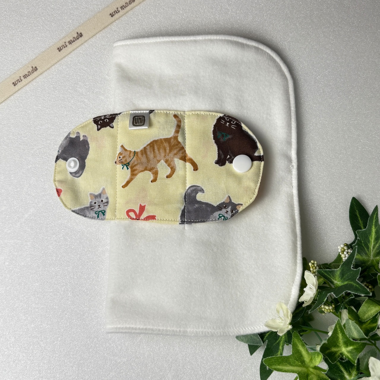 布ナプキン 1枚で2回使える便利なパッチン19cm おりもの 生理の終わりかけ 温活 妊活 リボン猫 ネコ アニマル 黄色 イエロー系