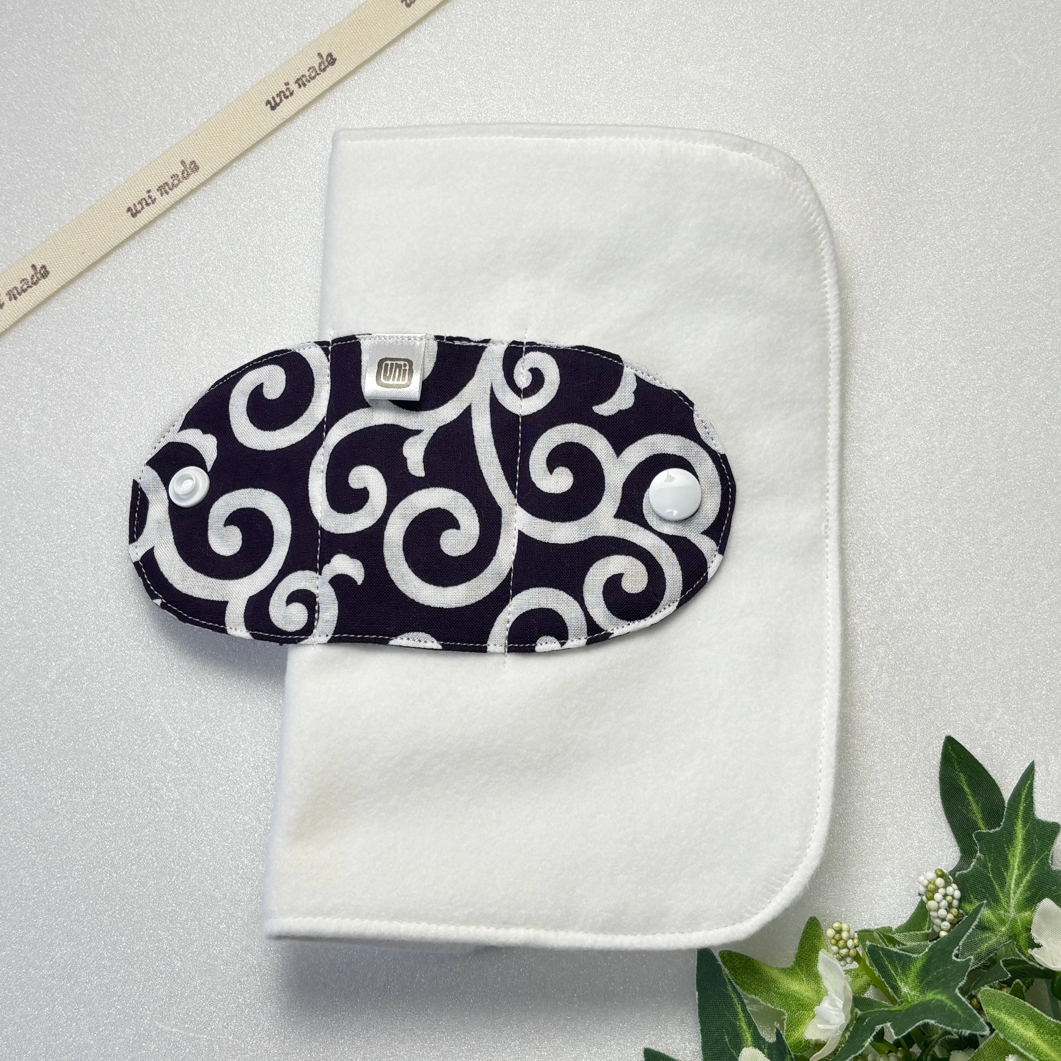 布ナプキン 1枚で2回使える便利なパッチン19cm おりもの 生理の終わりかけ 温活 妊活 和柄 唐草 濃紫