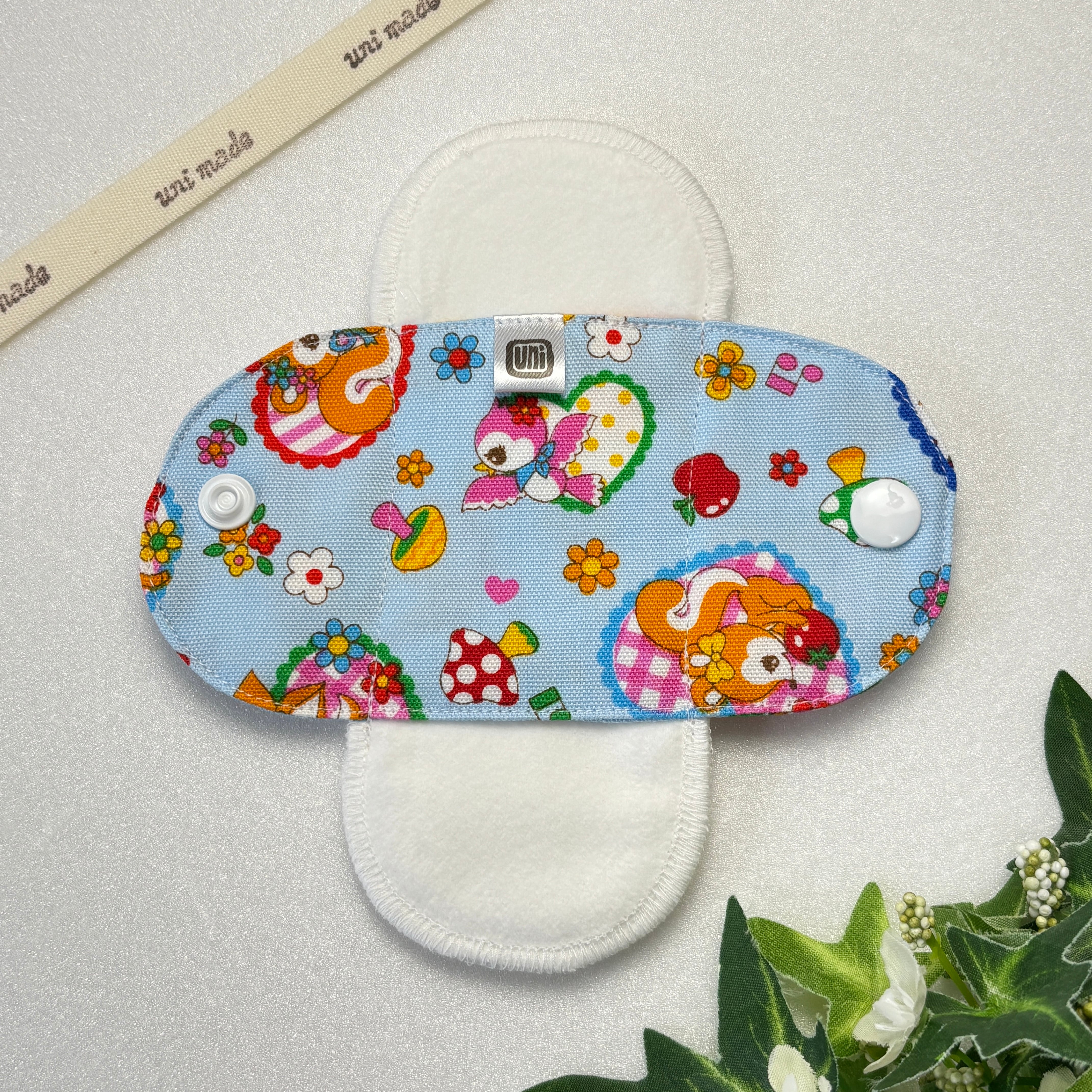 布ナプキン おりもの〜終わりかけ 温活 妊活 パンティライナー 15cm レトロ バンビちゃん ウサギ アニマル ブルー系