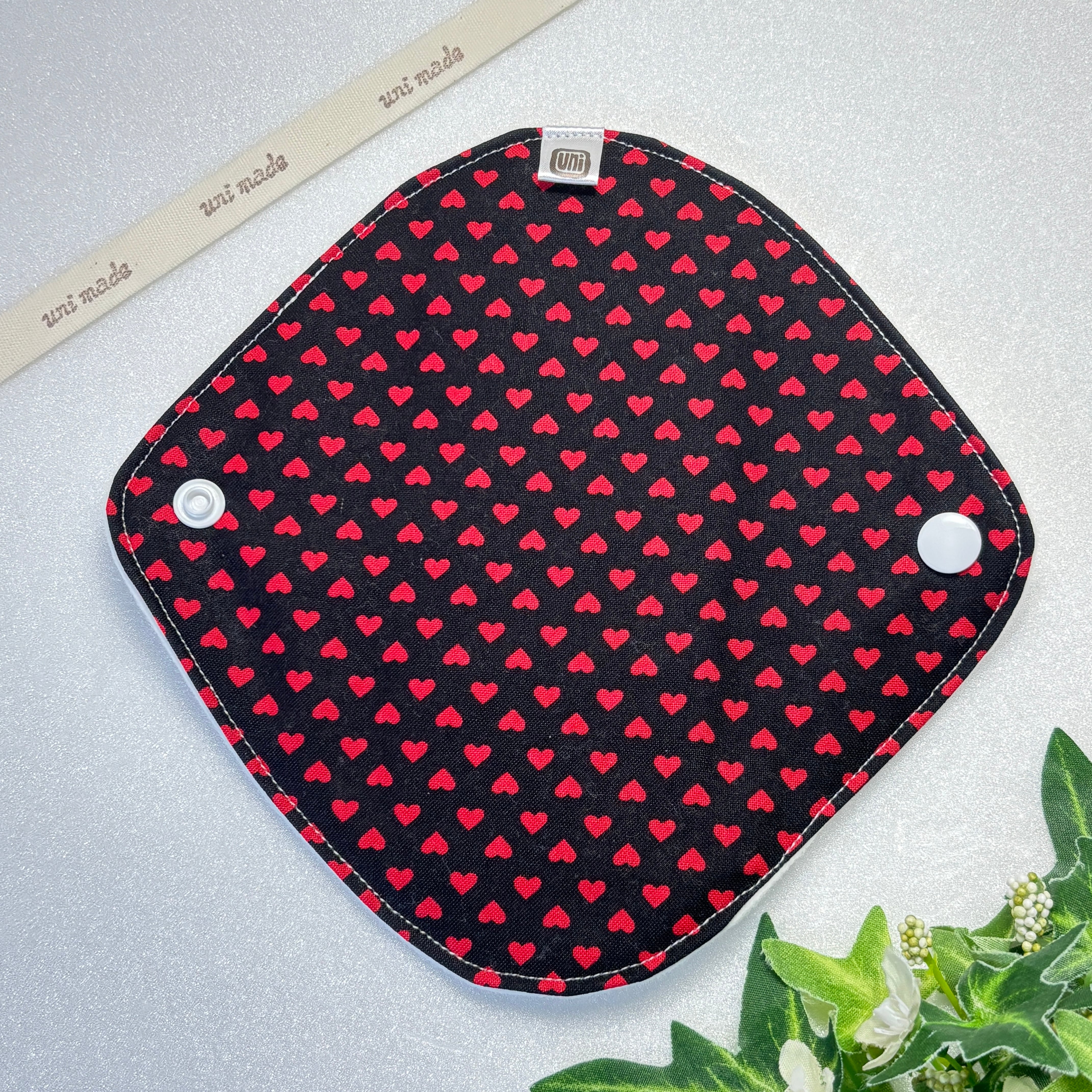 布ナプキン 防水S18cm 軽い日、尿モレ おりものにも 温活 妊活 シンプル ハート 黒地 赤ハート