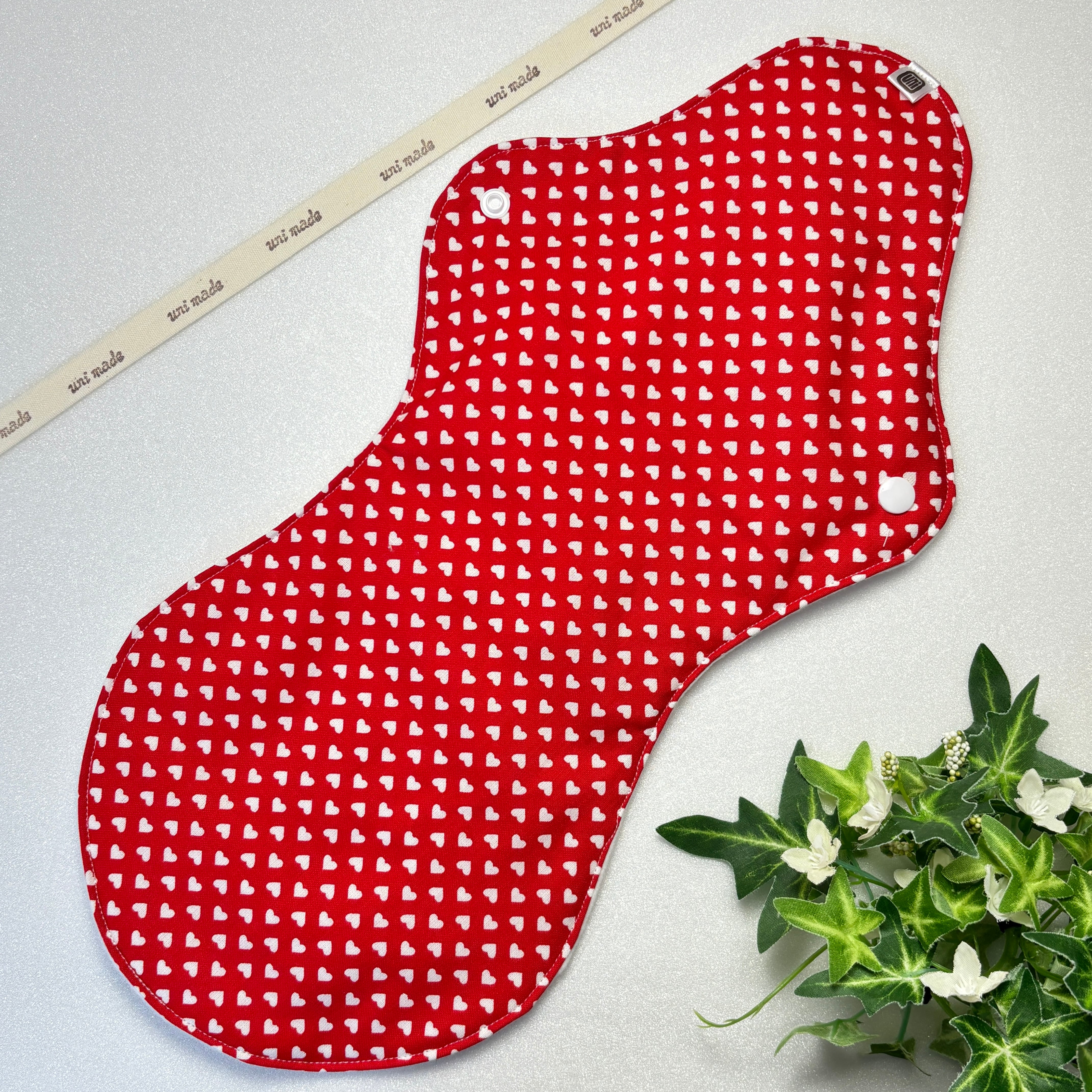 布ナプキン 防水超ロング 40cm おりもの〜多い日の夜まで 温活 妊活 シンプル ハート 赤地 白ハート