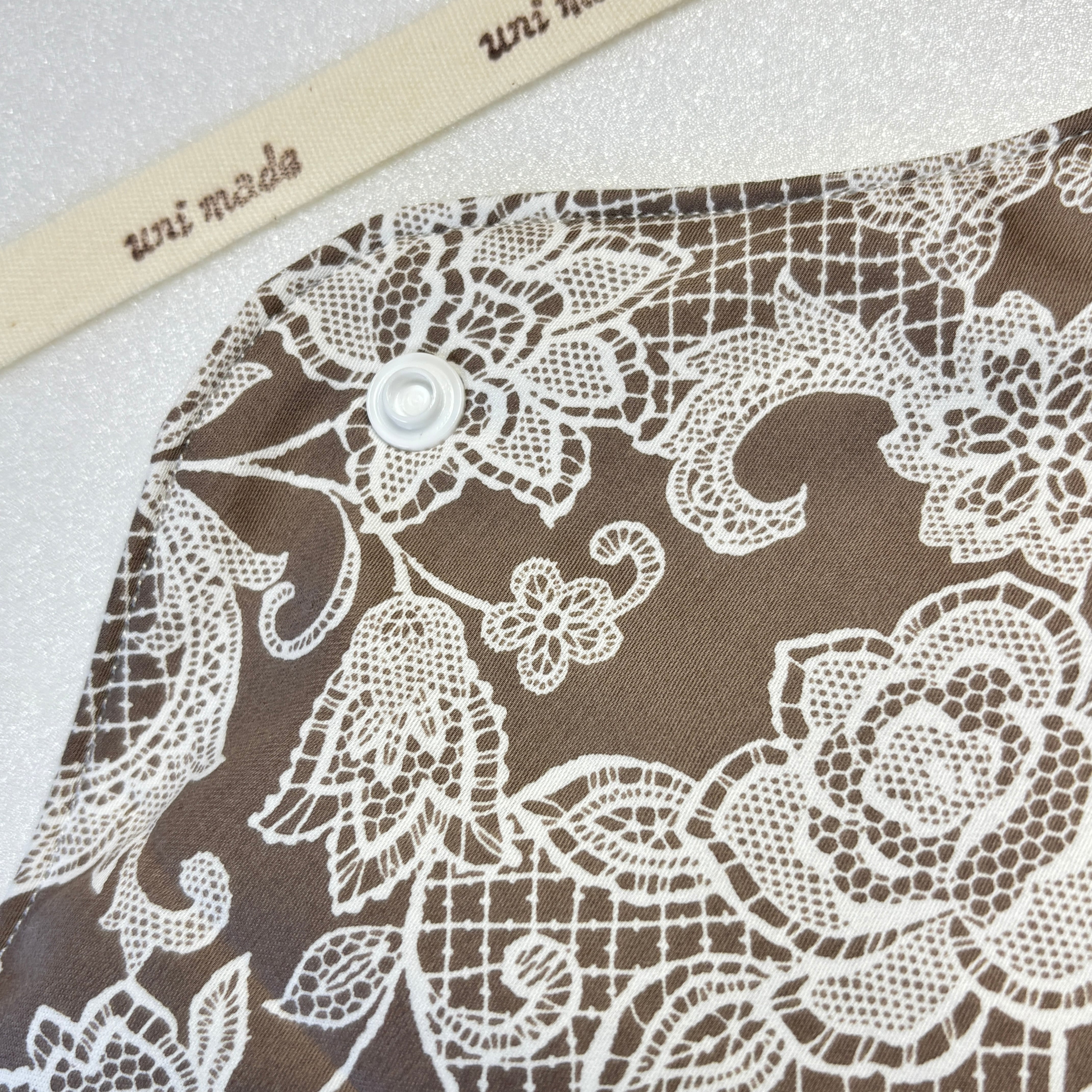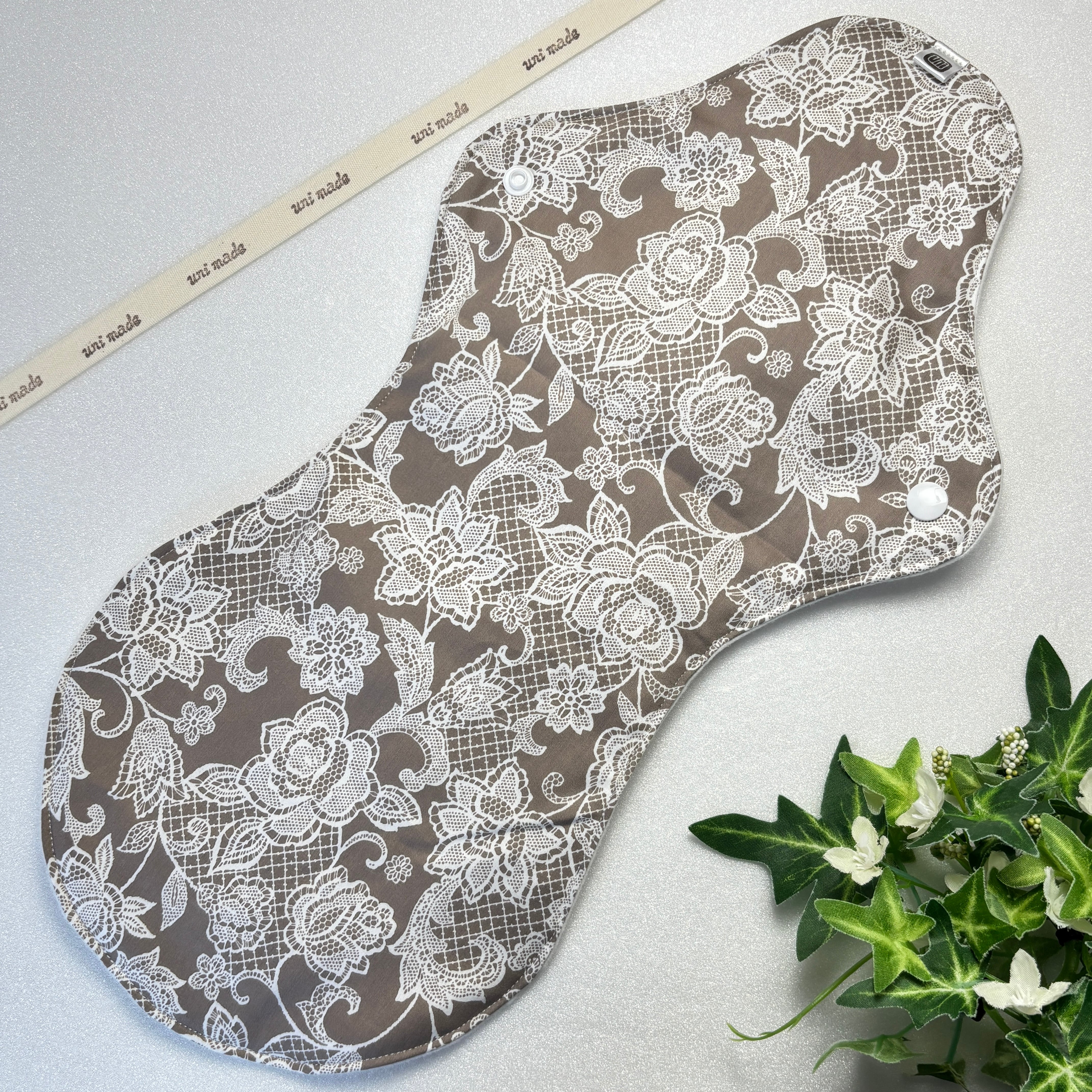 布ナプキン 防水超ロング 40cm おりもの〜多い日の夜まで 温活 妊活 フラワーレースプリント 花柄フラワー グレージュ系