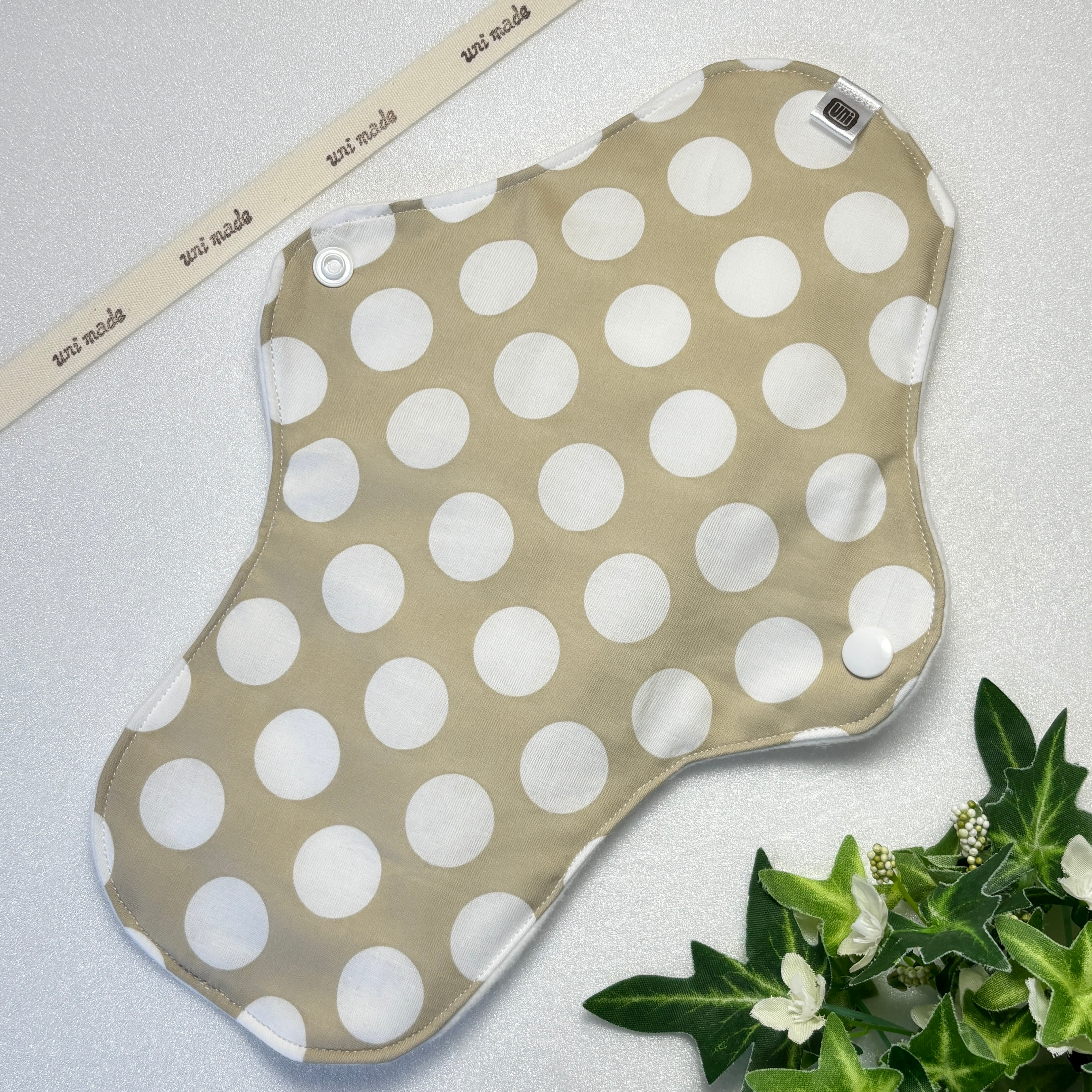 布ナプキン 防水ロング 28cm おりもの〜 多い日、尿もれにも 温活 妊活 シンプル 水玉 ドット柄 ベージュ系