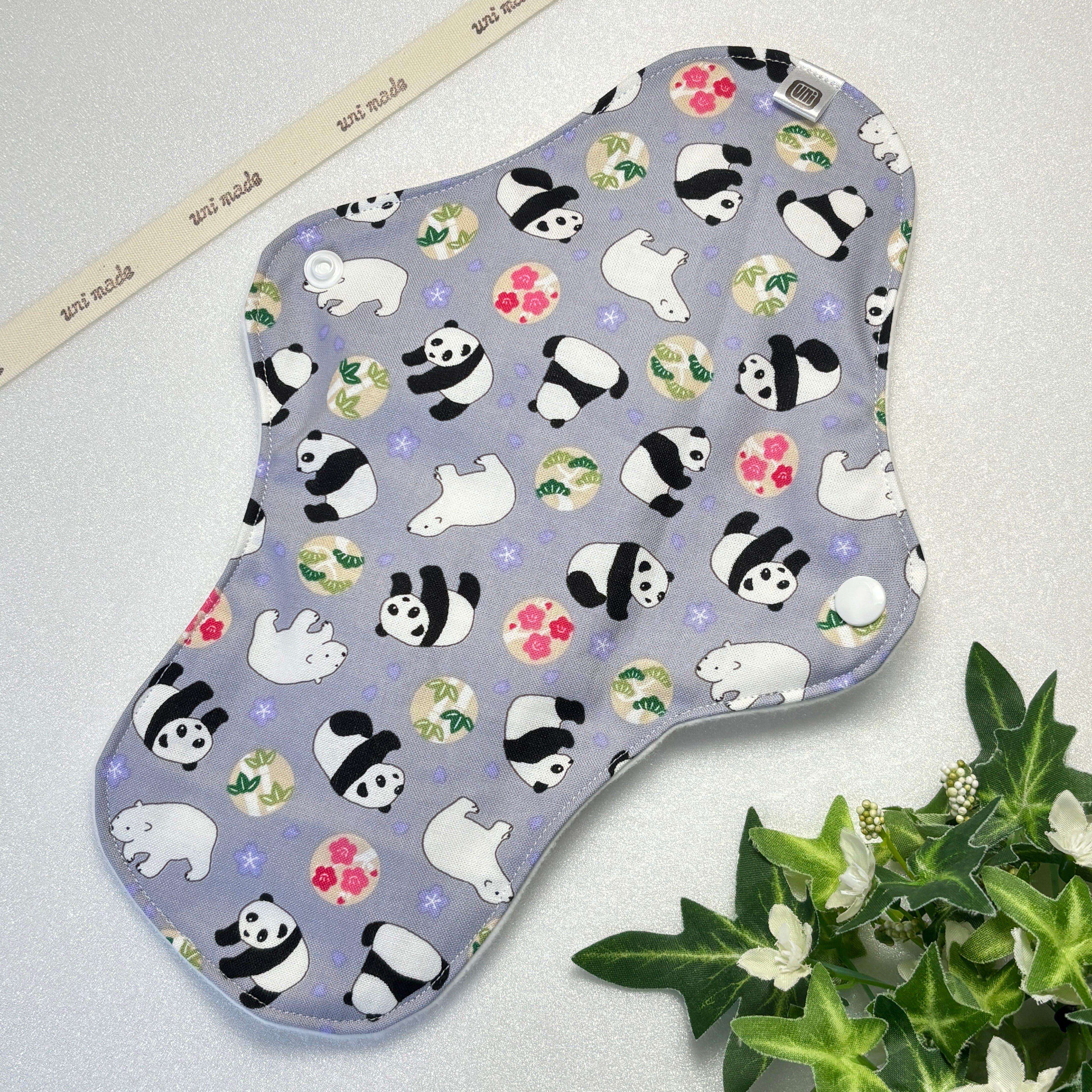 布ナプキン 防水ロング 28cm おりもの〜 多い日、尿もれにも 温活 妊活 和柄 縁起物 松竹梅パンダとシロクマ グレー系
