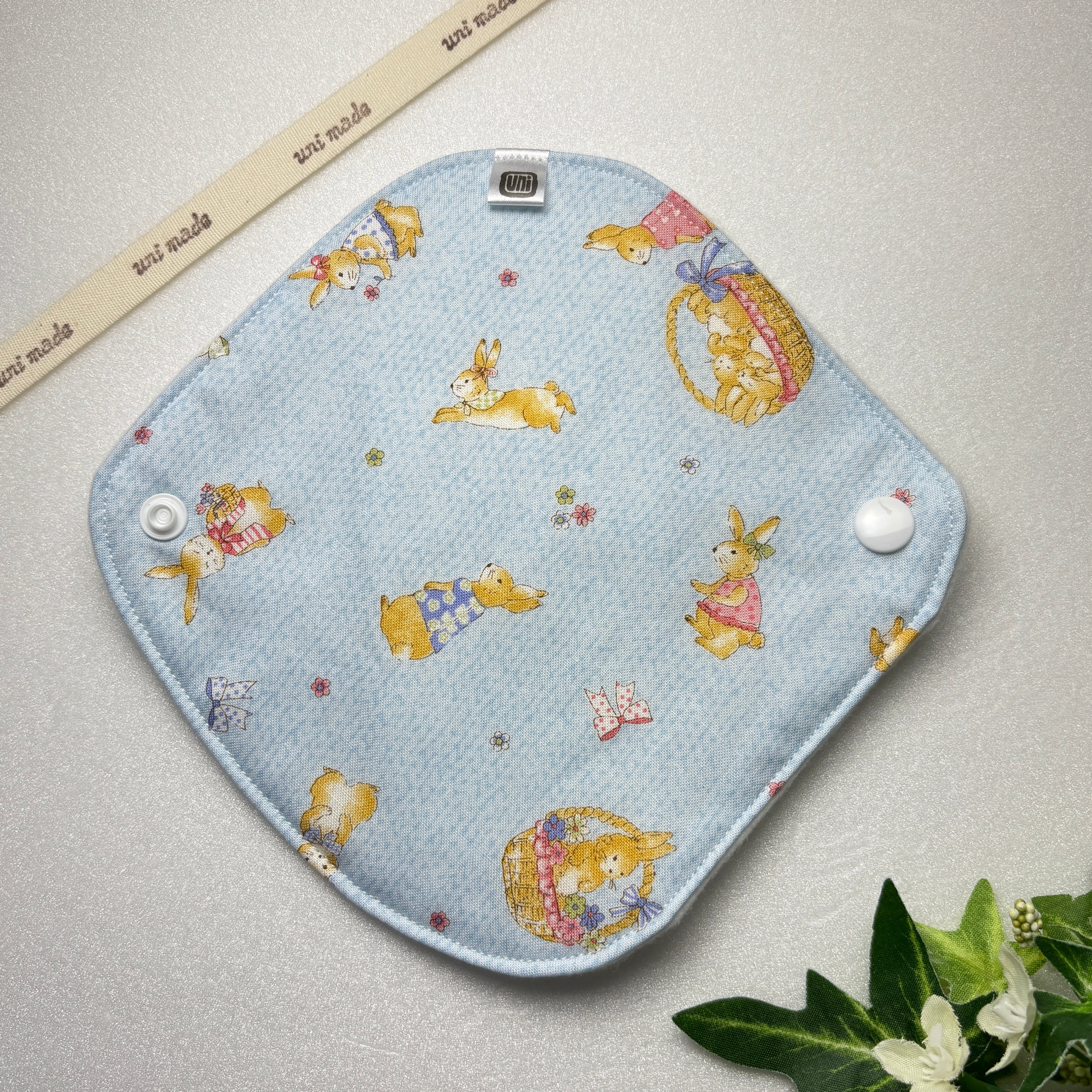 布ナプキン 防水S18cm 軽い日、尿モレ おりものにも 温活 妊活 うさぎちゃん カントリー アニマル ニットプリント ブルー系