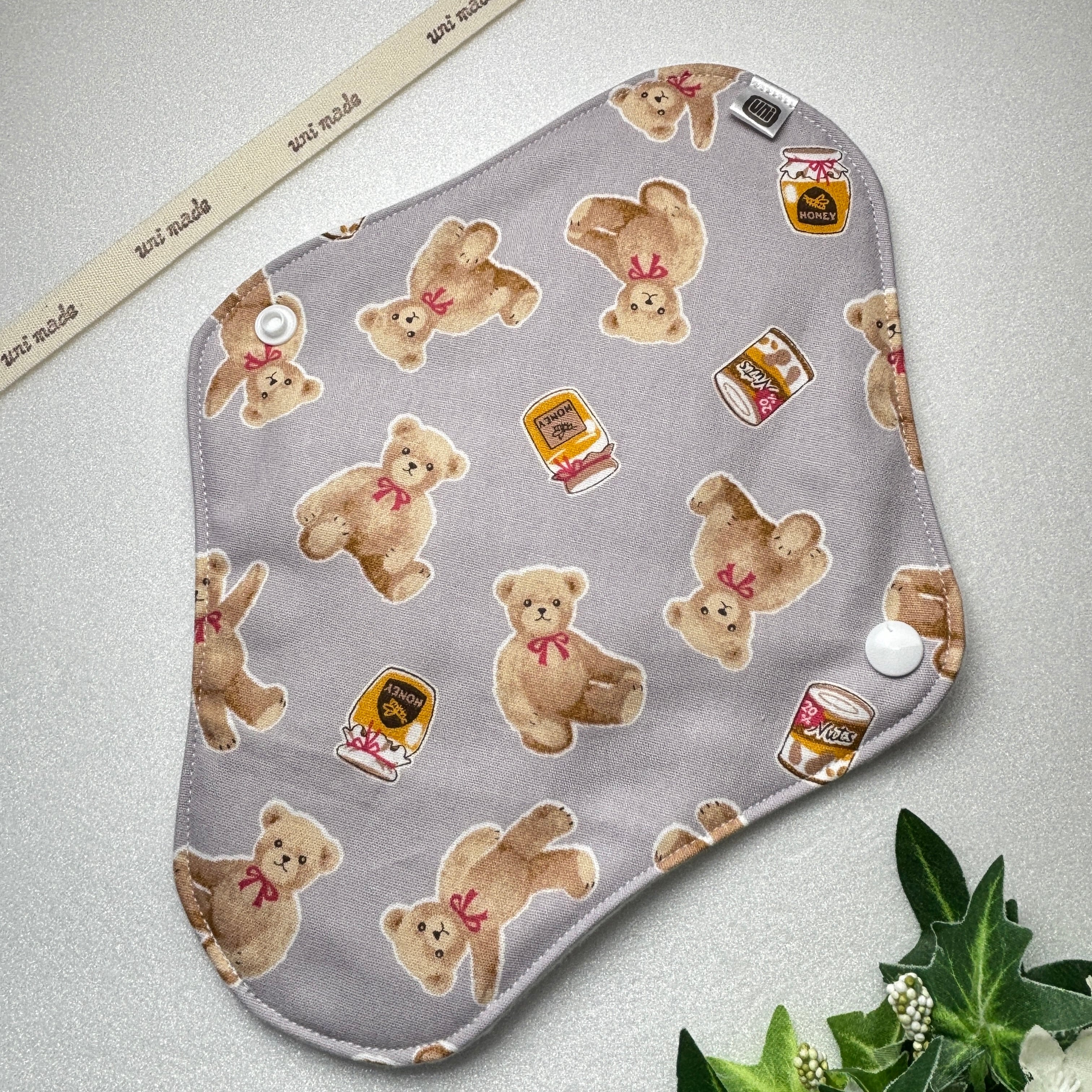 布ナプキン 防水レギュラー 24cmおりもの〜生理、尿モレにも 温活 妊活 ハチミツとクマさん アニマル グレージュ系