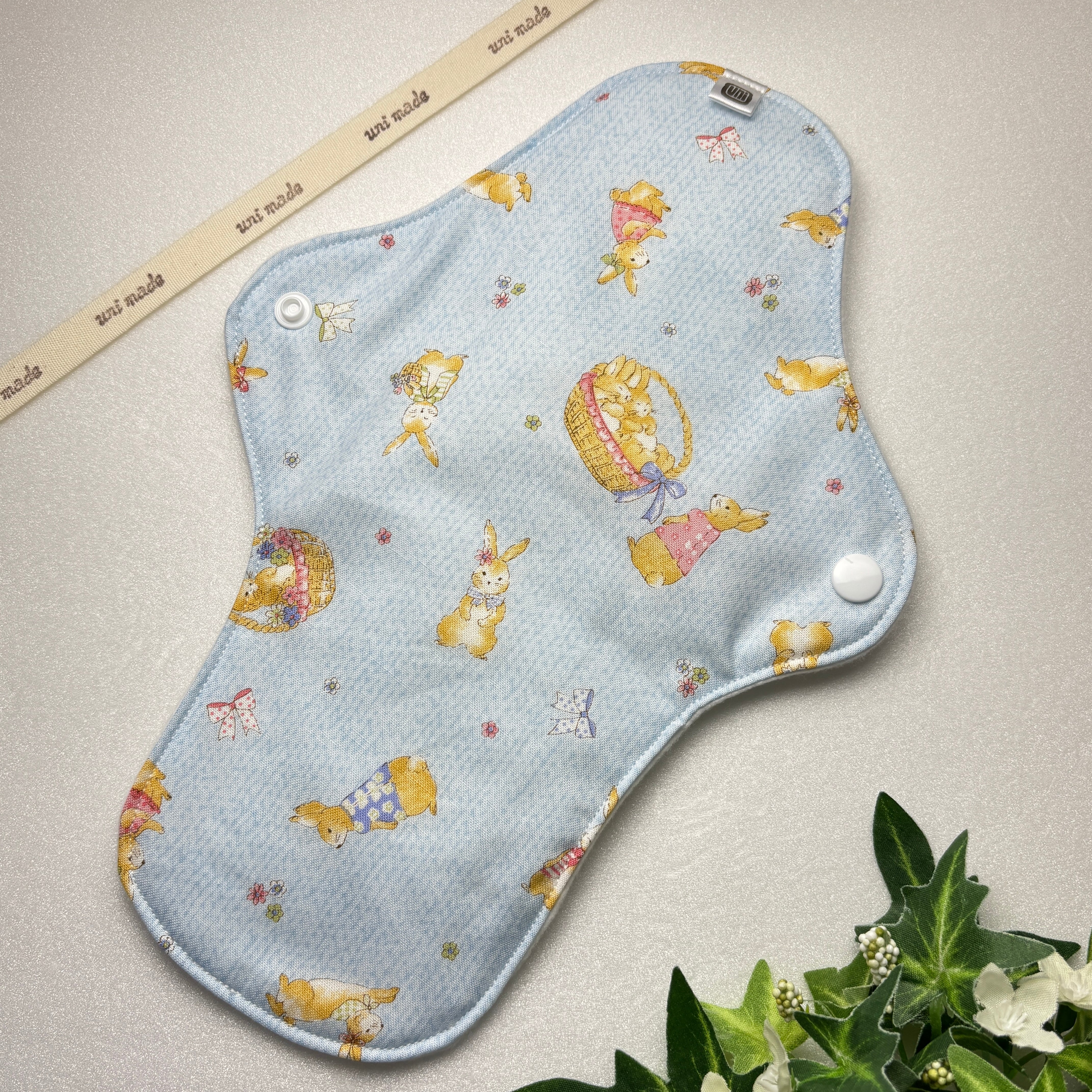 布ナプキン 防水ロング 28cm おりもの〜 多い日、尿もれにも 温活 妊活 うさぎちゃん カントリー アニマル ニットプリント ブルー系