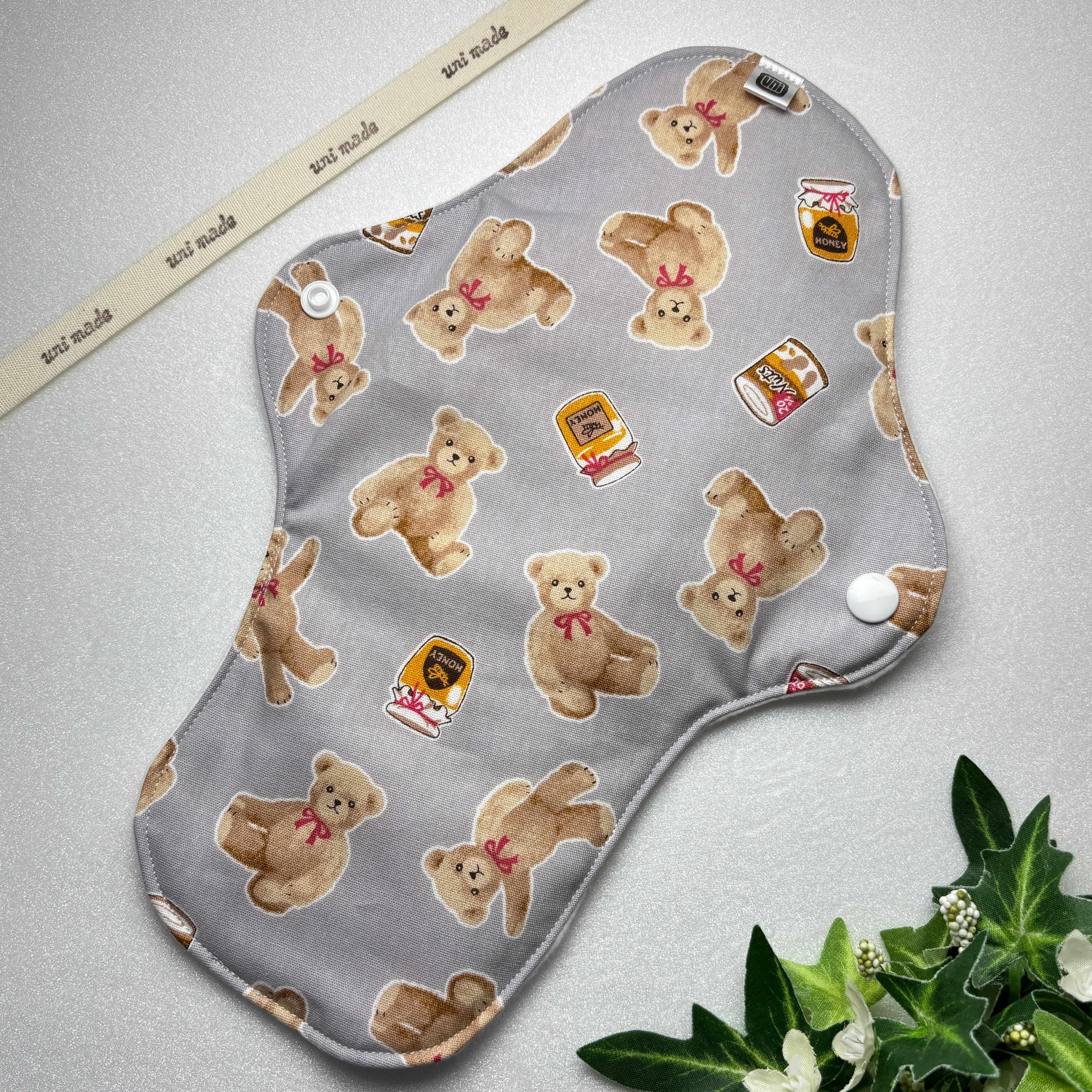 布ナプキン 防水ロング 28cm おりもの〜 多い日、尿もれにも 温活 妊活 ハチミツとクマさん アニマル グレージュ系