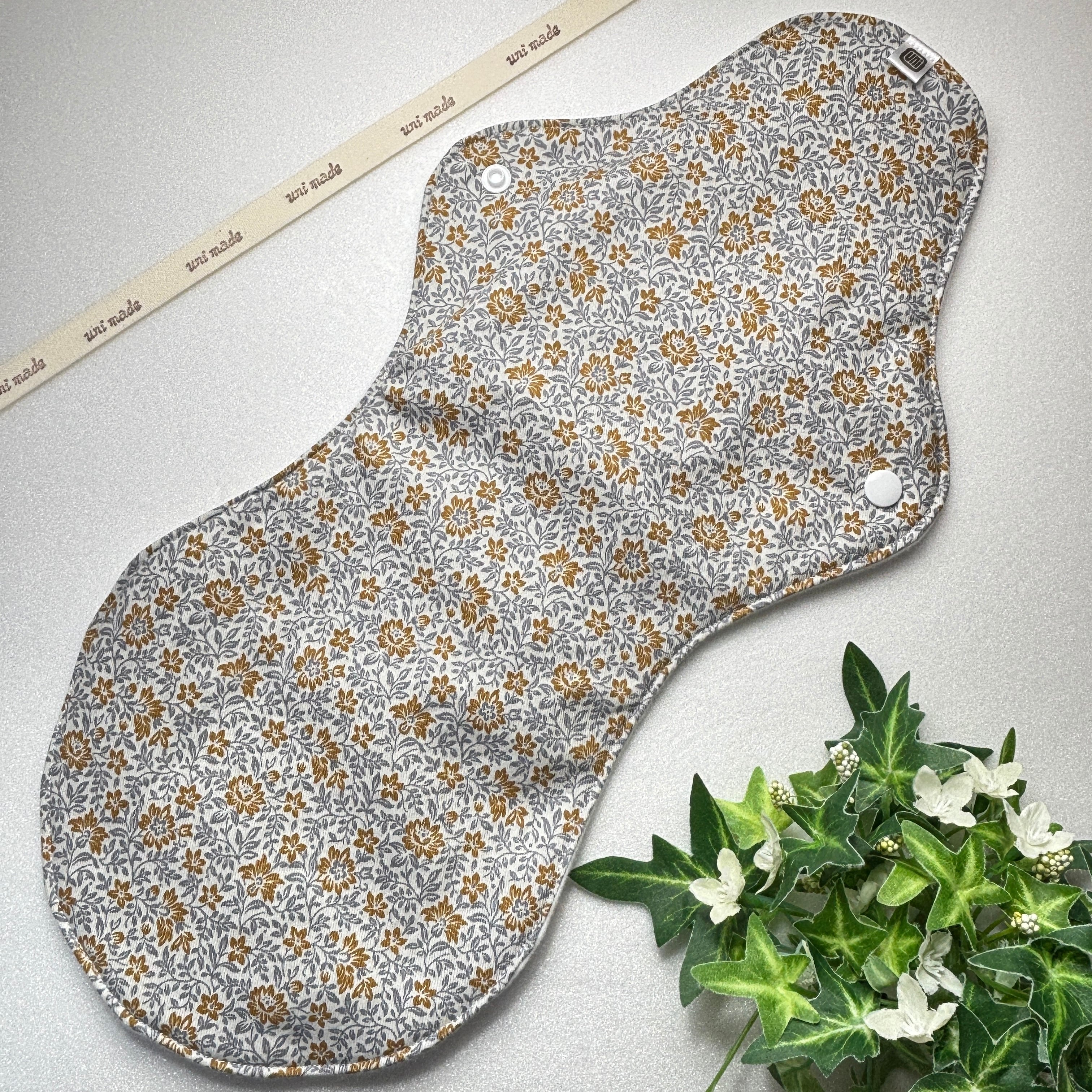 布ナプキン 防水超ロング 40cm おりもの〜多い日の夜まで 温活 妊活 小花 花柄フラワー グレー系