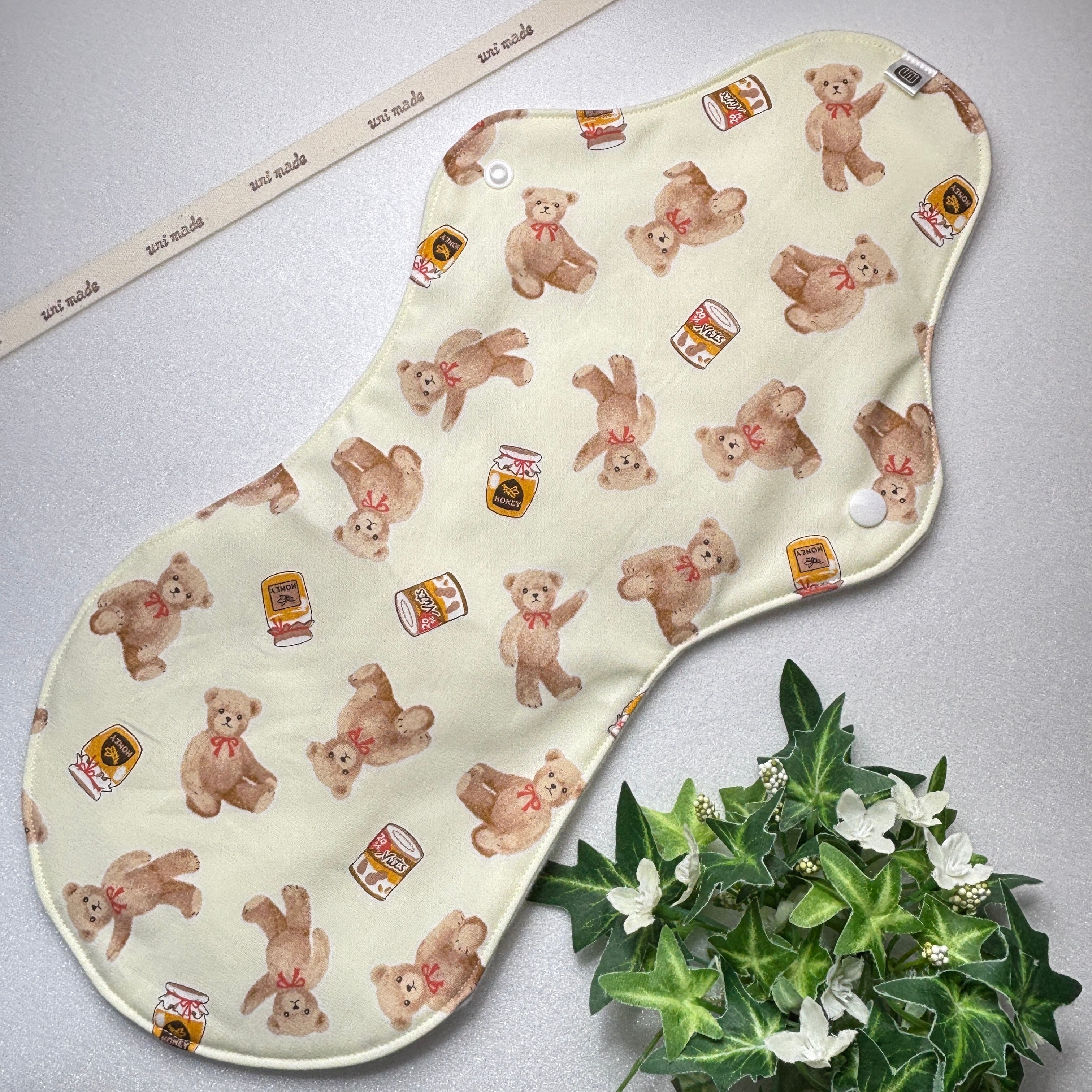 布ナプキン 防水超ロング 40cm おりもの〜多い日の夜まで 温活 妊活 ハチミツとクマさん アニマル イエロー クリーム系