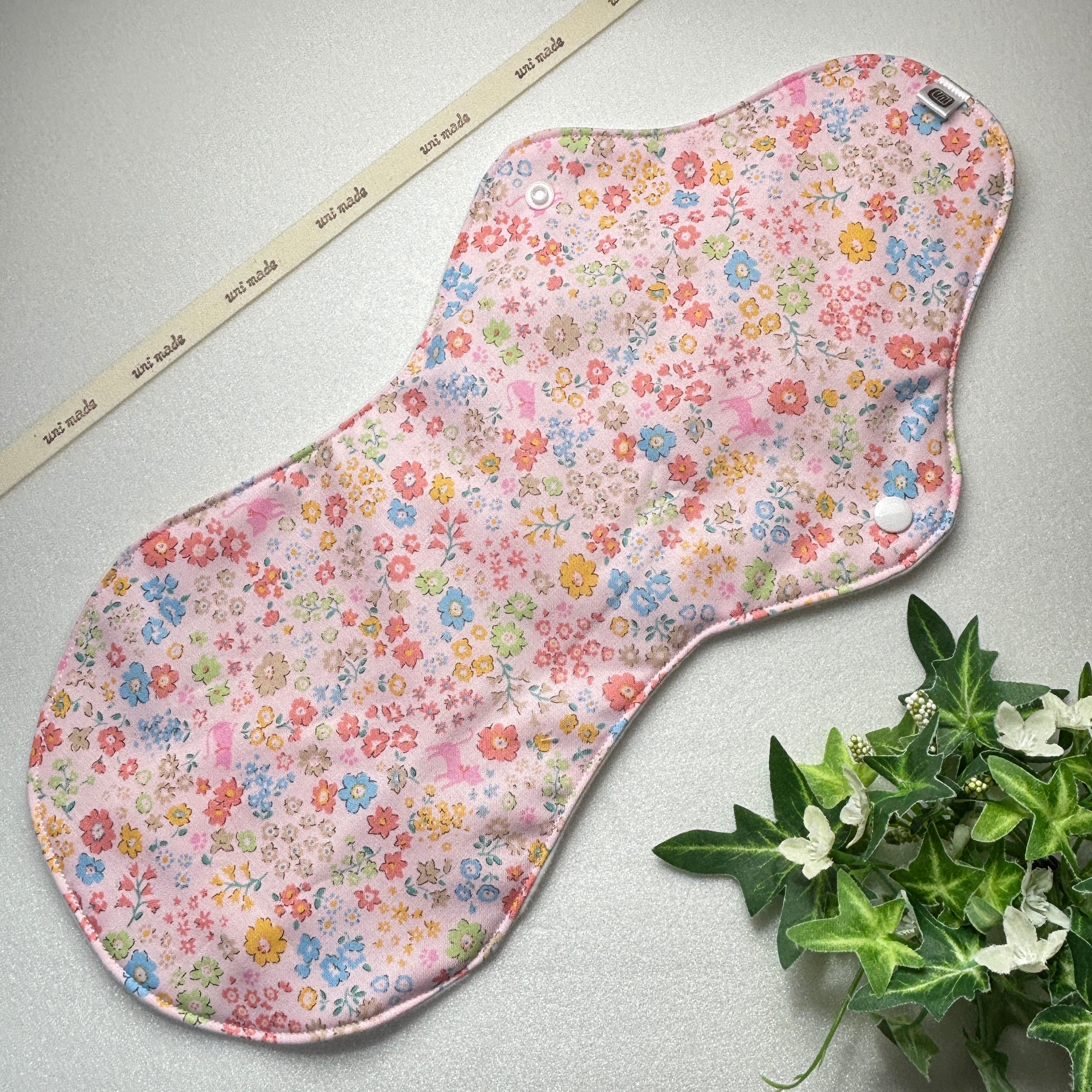 布ナプキン 防水超ロング 40cm おりもの〜多い日の夜まで 温活 妊活 小花と猫 隠れネコ 花柄フラワー アニマル ピンク系