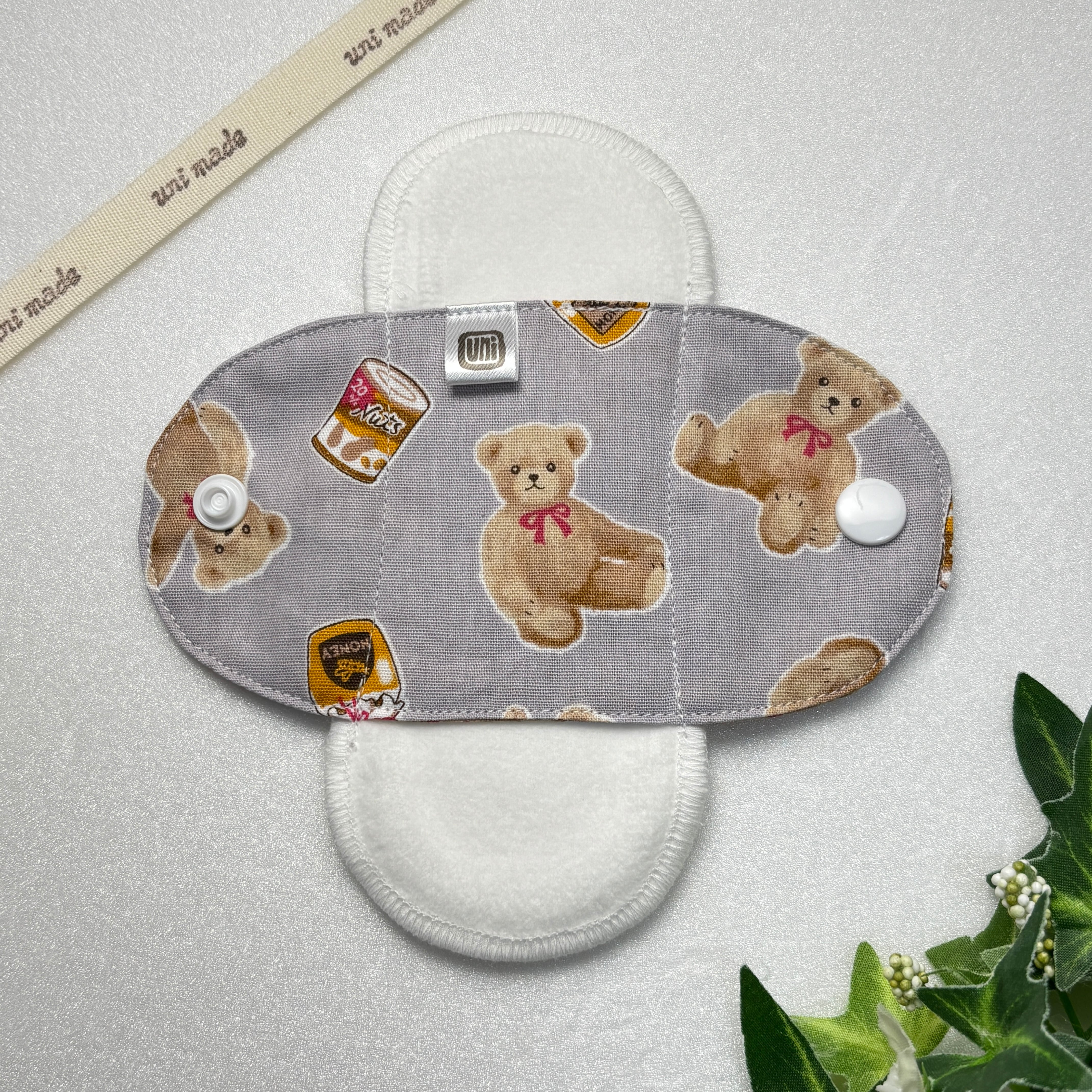 布ナプキン おりもの〜終わりかけ 温活 妊活 パンティライナー 15cm ハチミツとクマさん アニマル グレージュ系