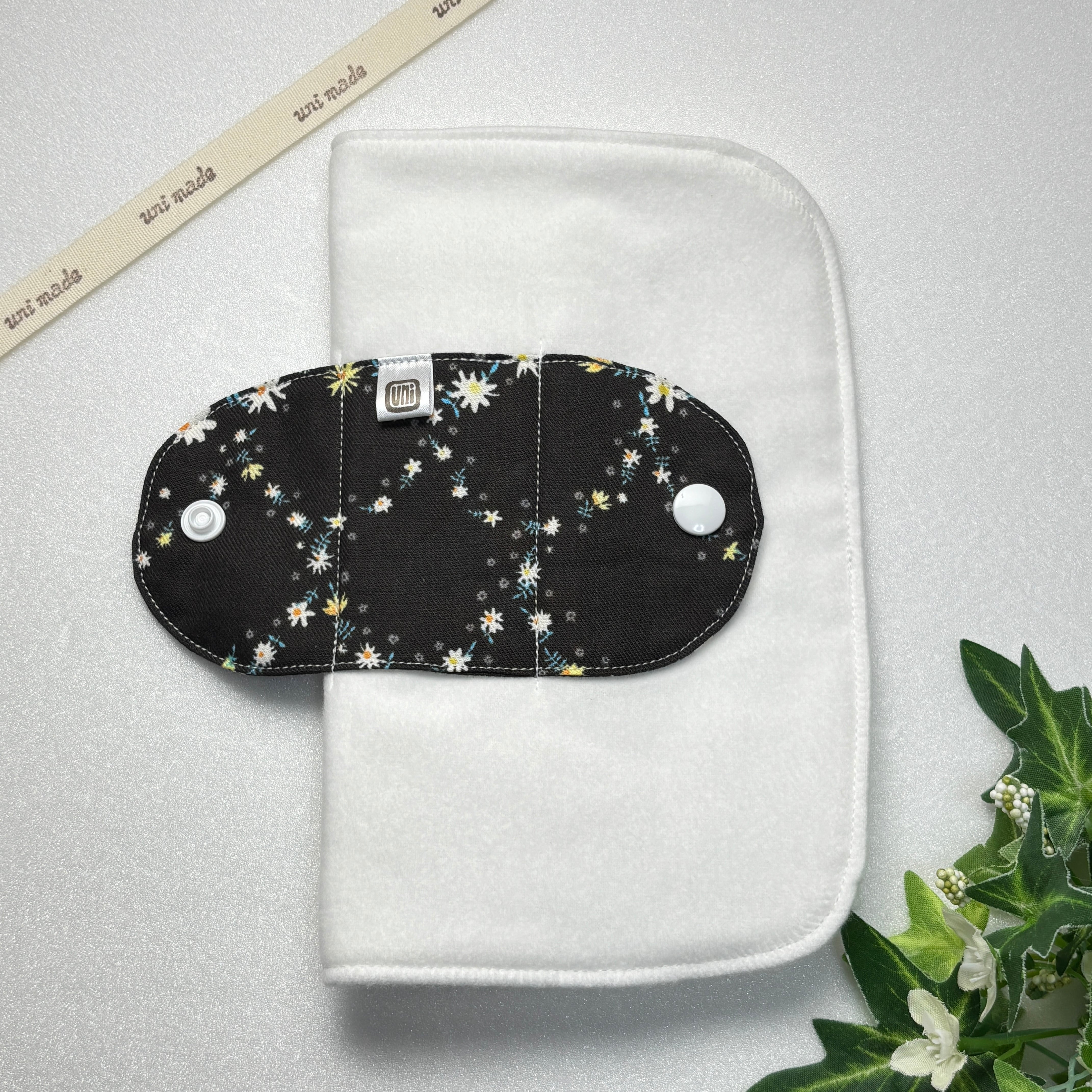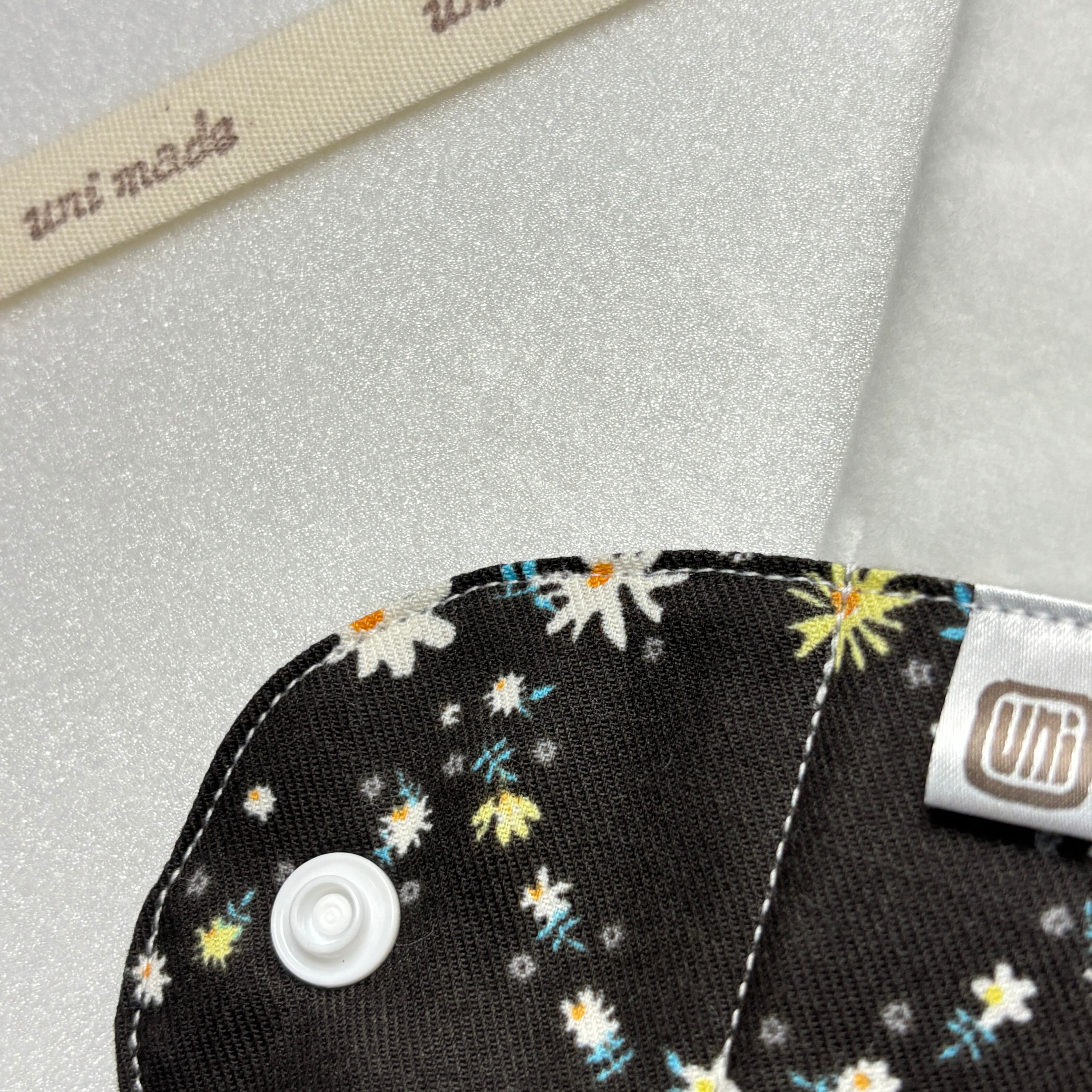 布ナプキン 1枚で2回使える便利なパッチン19cm おりもの 生理の終わりかけ 温活 妊活 フラワーリング 小花 花柄フラワー 黒系