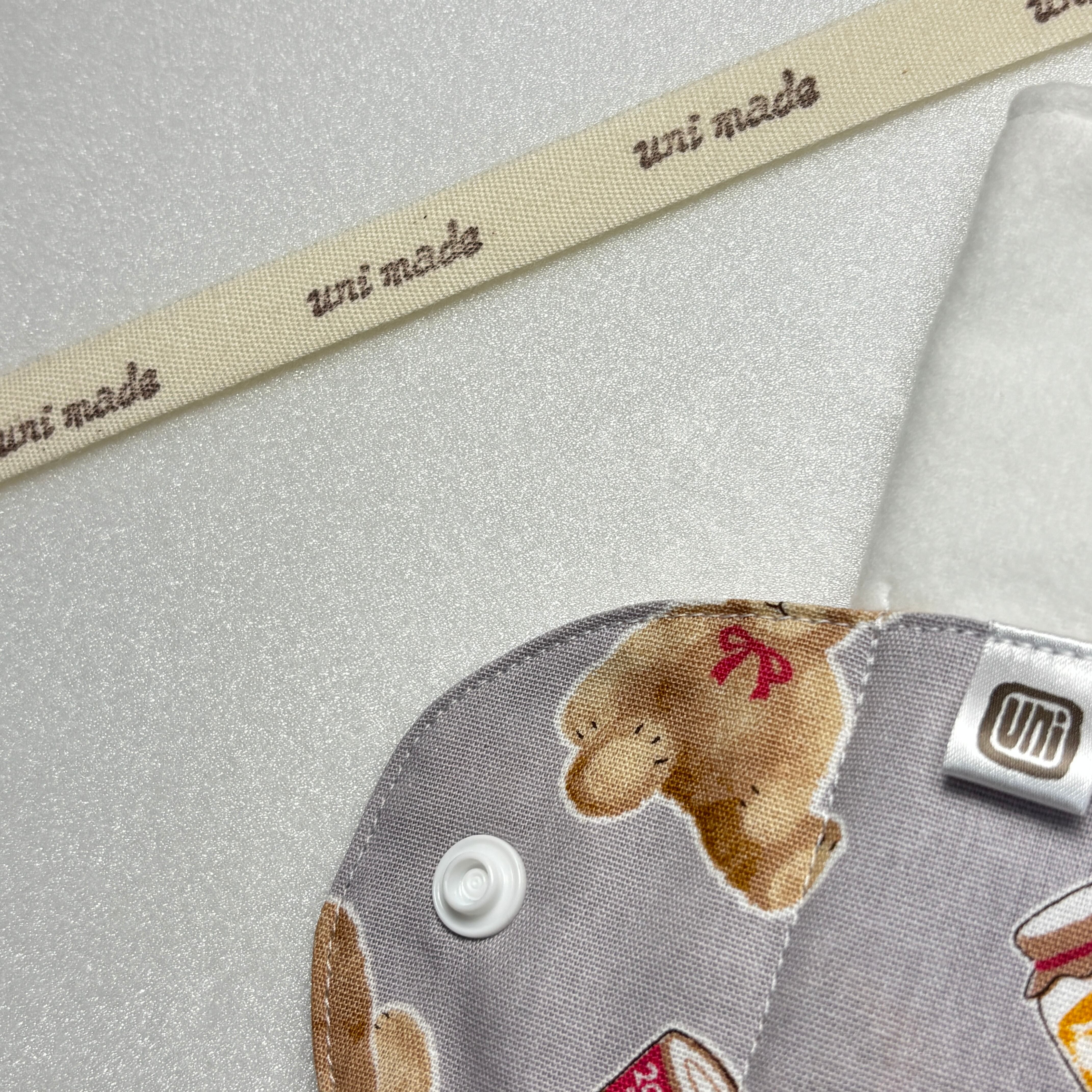 布ナプキン 1枚で2回使える便利なパッチン19cm おりもの 生理の終わりかけ 温活 妊活 ハチミツとクマさん アニマル グレージュ系