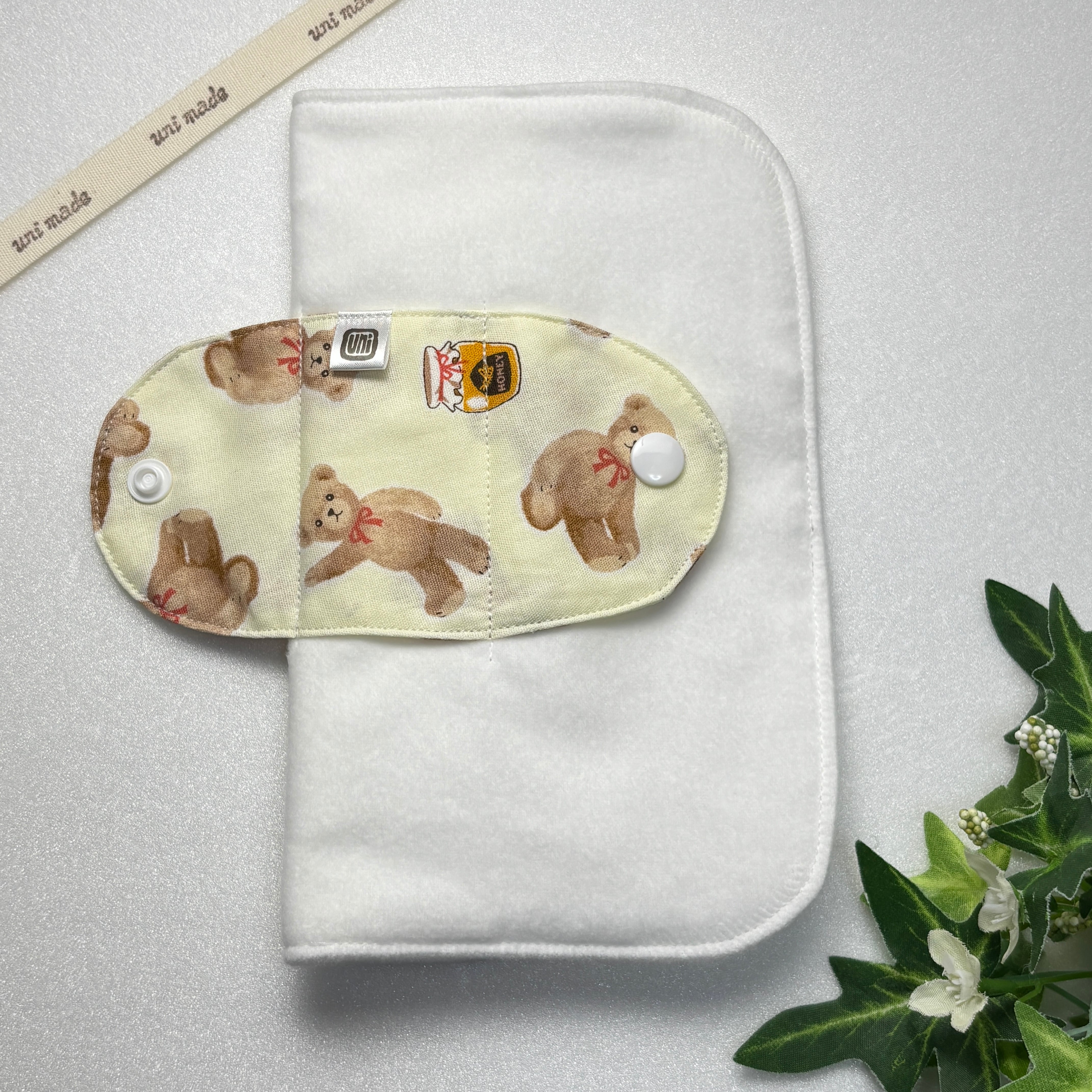 布ナプキン 1枚で2回使える便利なパッチン19cm おりもの 生理の終わりかけ 温活 妊活 ハチミツとクマさん アニマル イエロー クリーム系