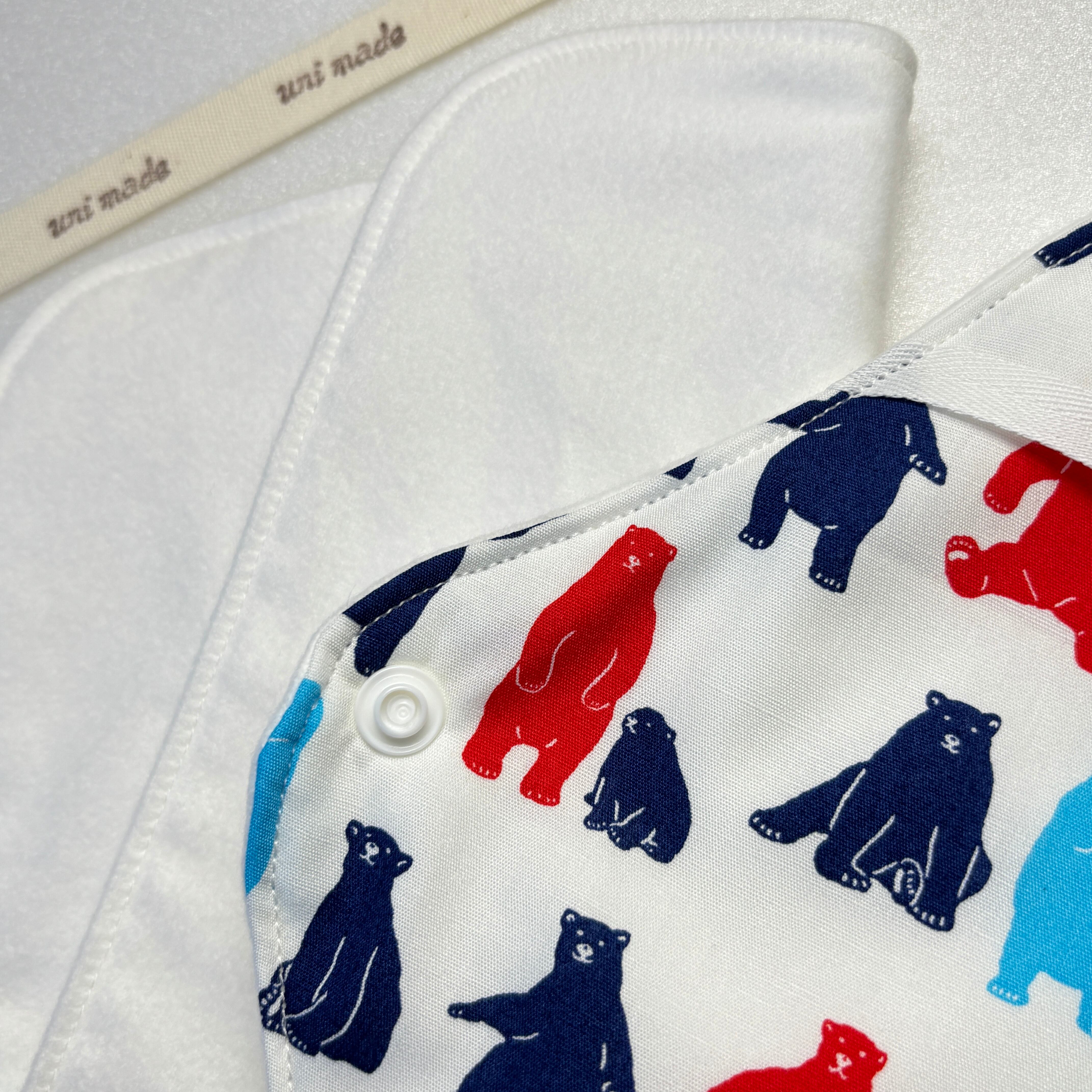 【布ナプキンの元祖】 防水レギュラー 24cmホルダー&プレーンセット おりもの〜生理、多い日、少ない日、尿漏れ、温活 妊活 カラフルなクマさん 白地 アニマル