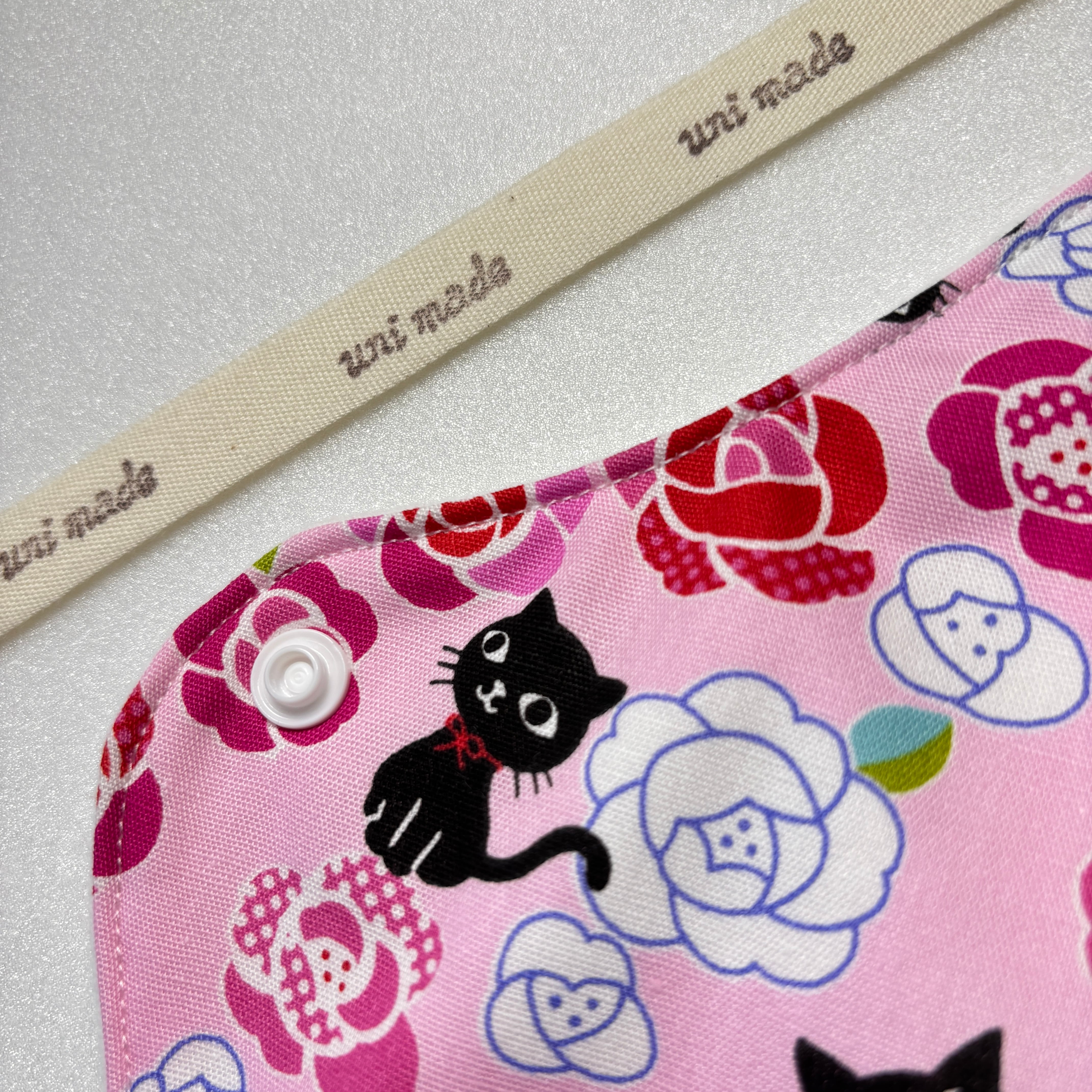 布ナプキン 防水ロング 28cm おりもの〜 多い日、尿もれにも 温活 妊活 黒猫とバラ ネコ アニマル 花柄フラワー ピンク系
