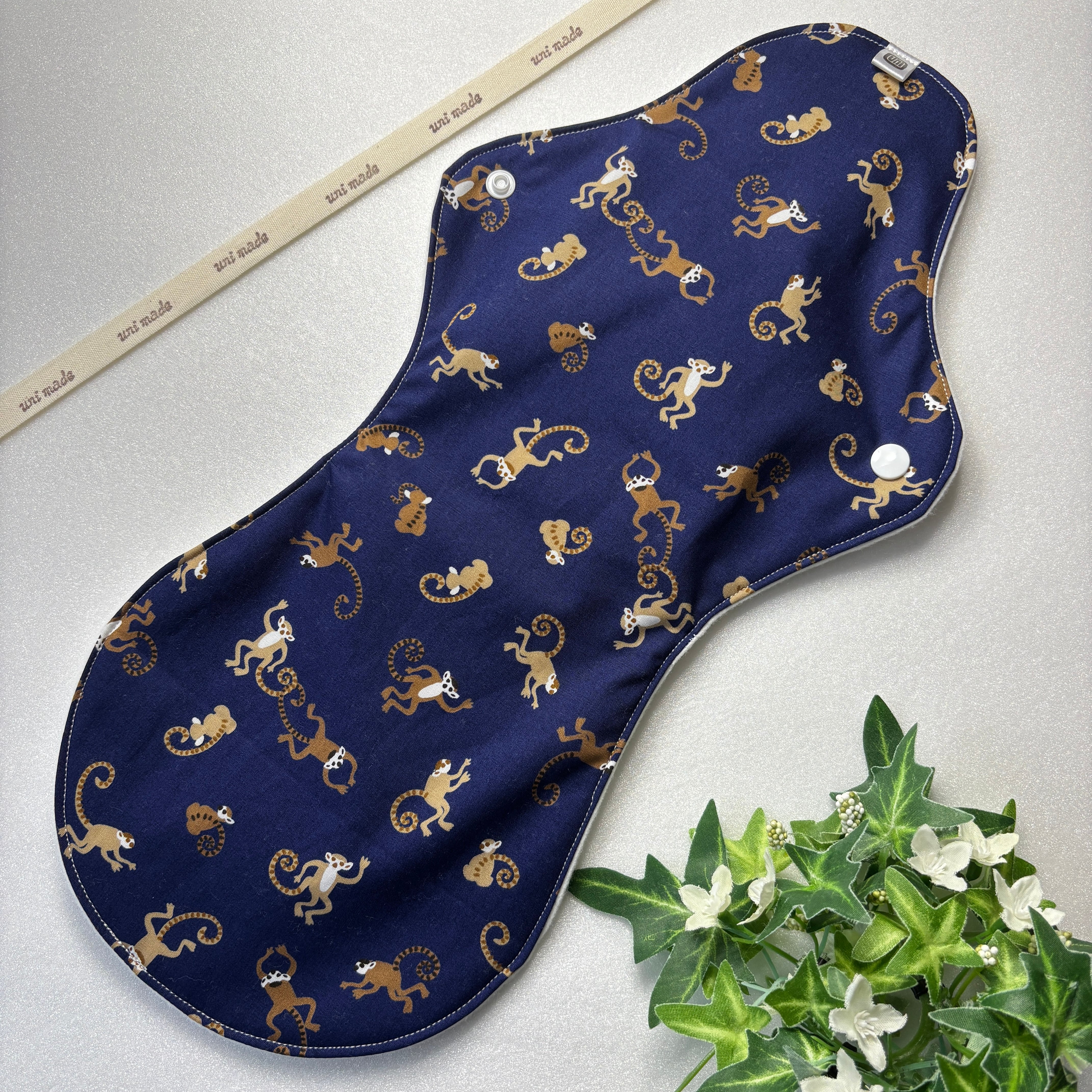 布ナプキン 防水超ロング 40cm おりもの〜多い日の夜まで 温活 妊活 おさるさん ミーアキャット アニマル ネイビー系