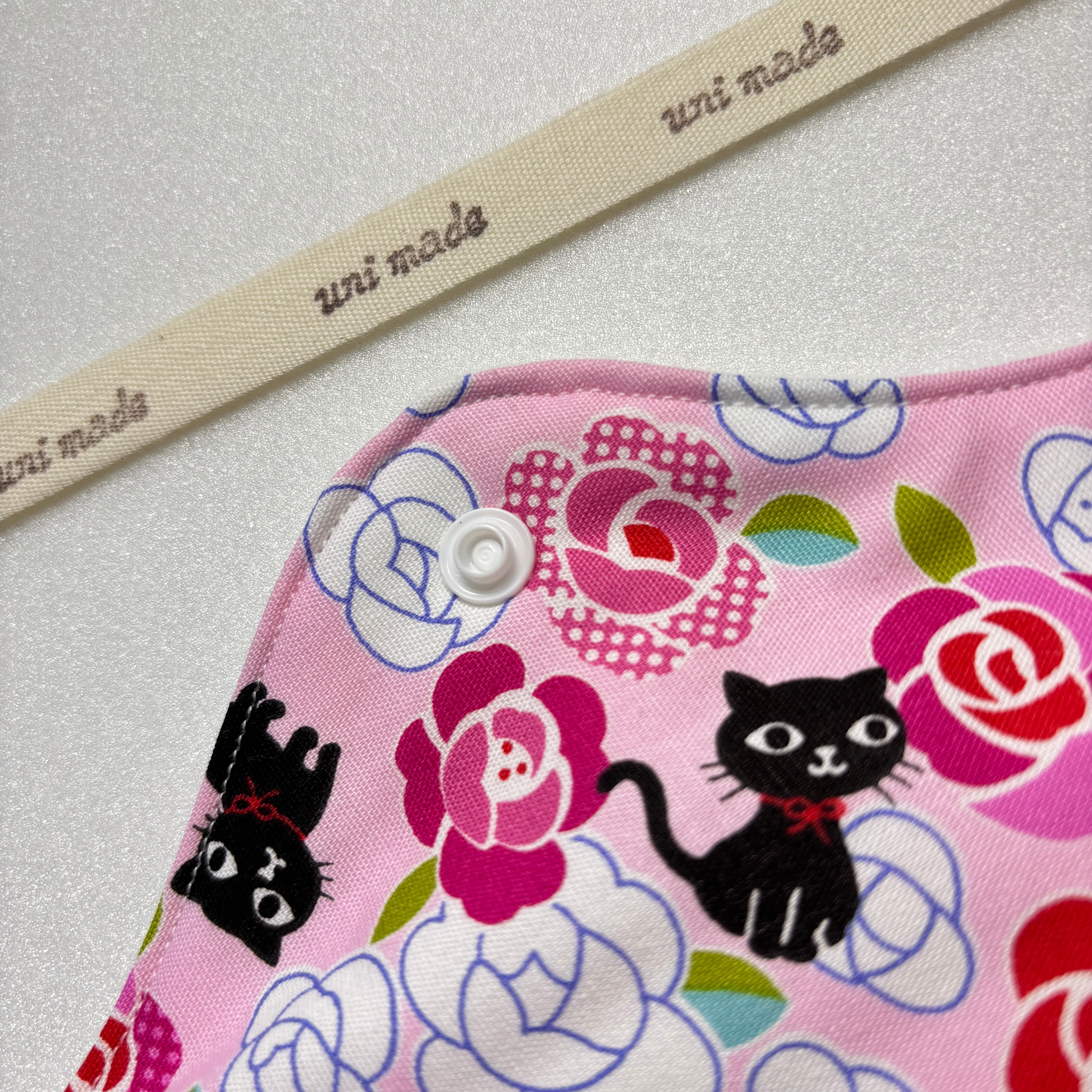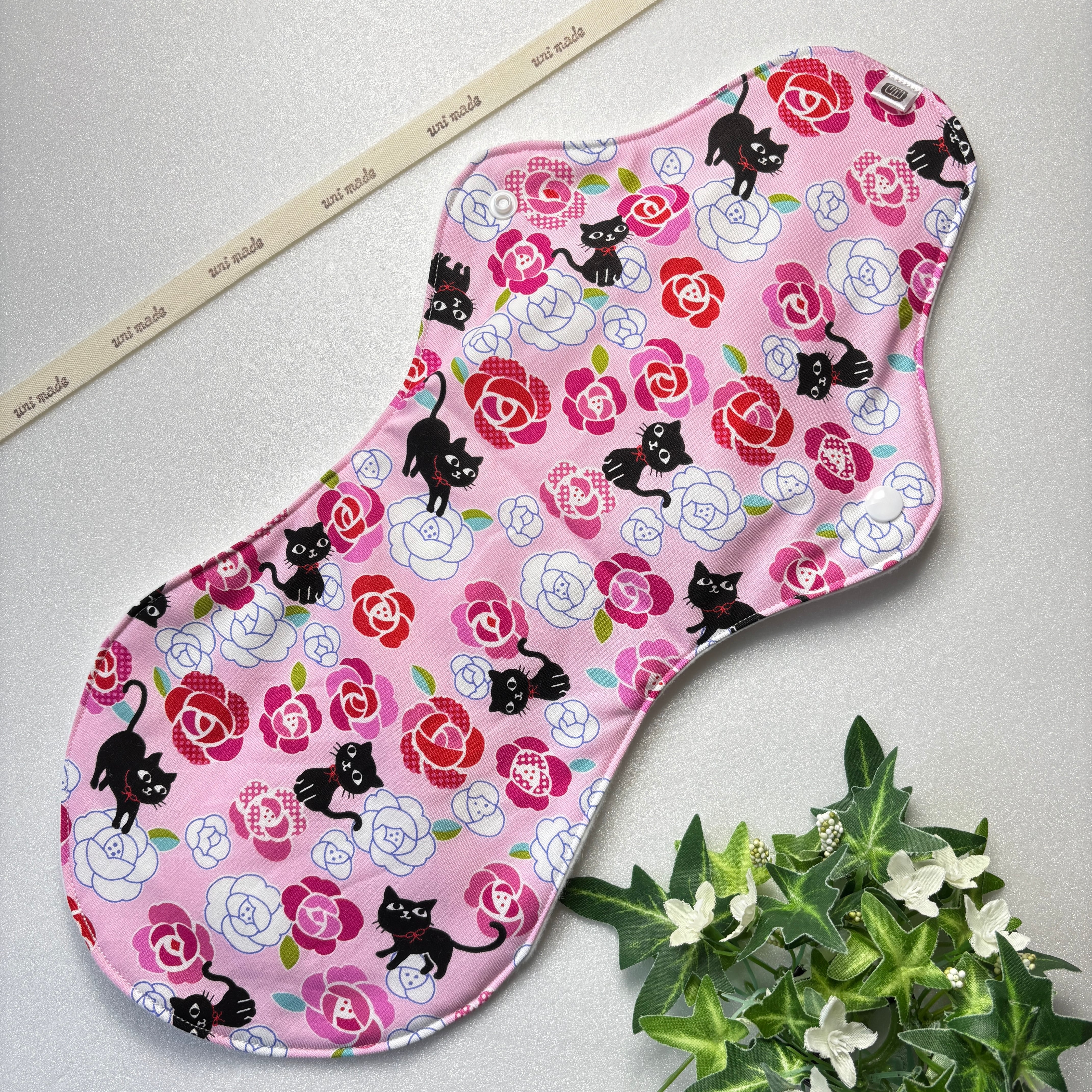 布ナプキン 防水超ロング 40cm おりもの〜多い日の夜まで 温活 妊活 黒猫とバラ ネコ アニマル 花柄フラワー ピンク系