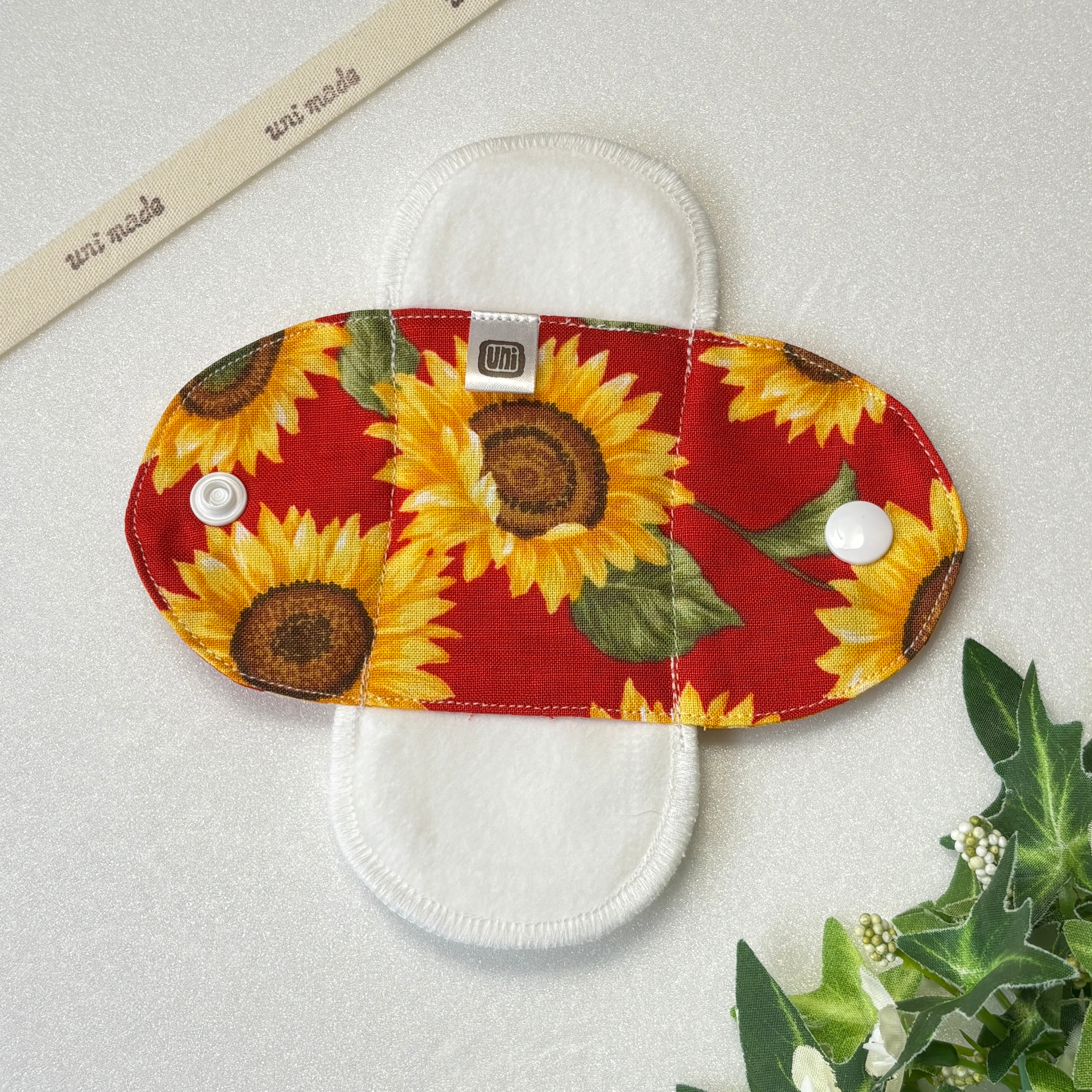 布ナプキン おりもの〜終わりかけ 温活 妊活 パンティライナー 15cm ひまわり パワーレッド 花柄フラワー
