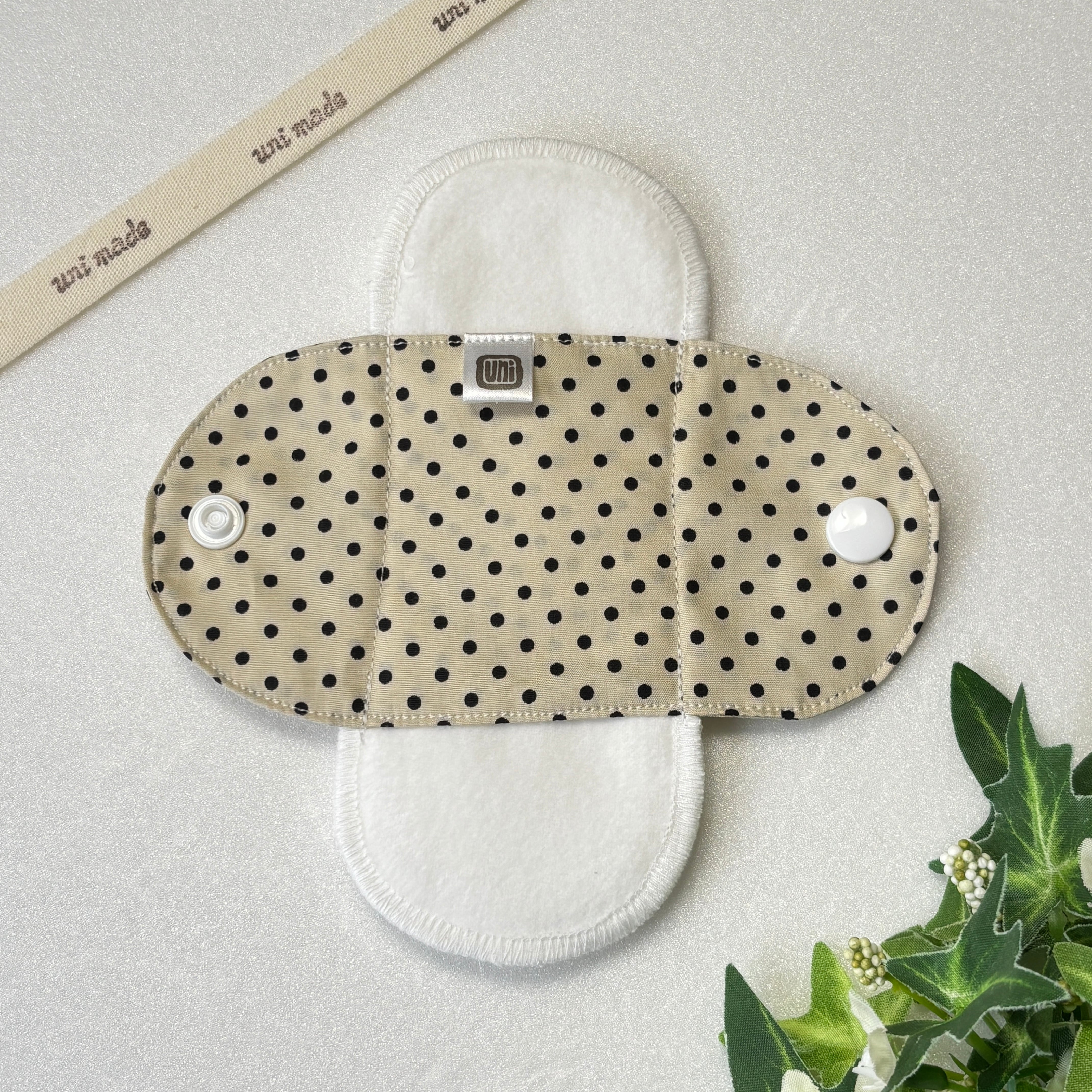 布ナプキン おりもの〜終わりかけ 温活 妊活 パンティライナー 15cm シンプルドット柄 黒玉 ベージュ系
