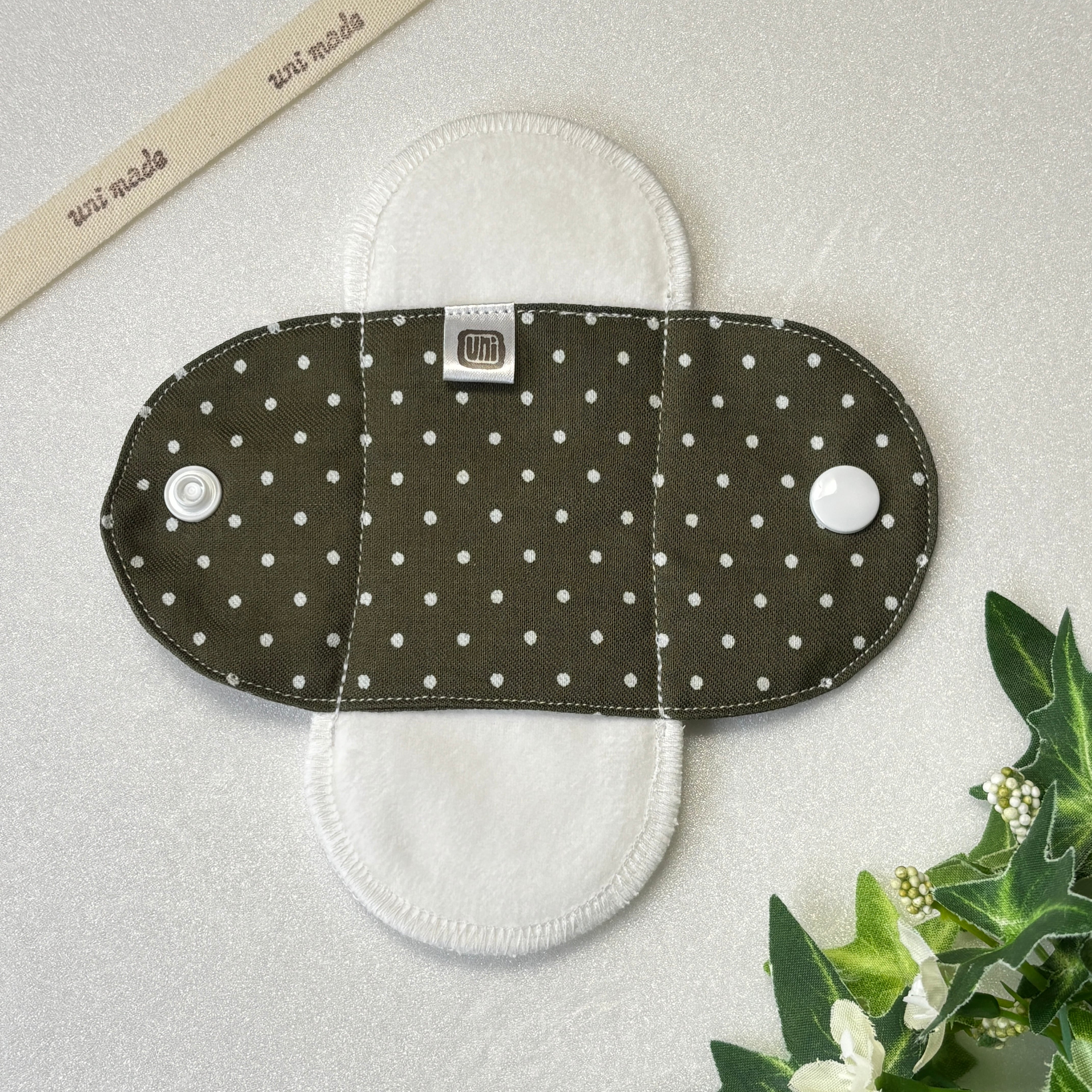 布ナプキン おりもの〜終わりかけ 温活 妊活 パンティライナー 15cm シンプルドット柄 モスグリーン