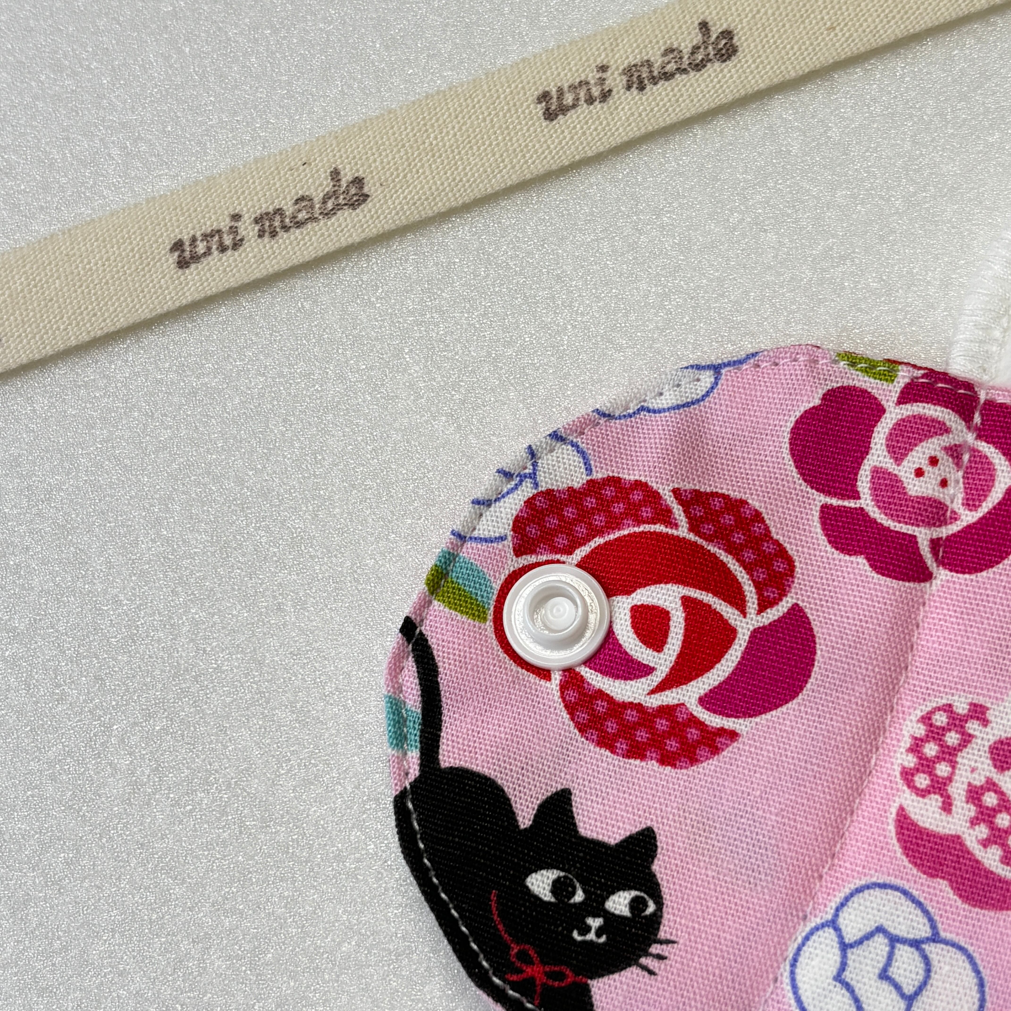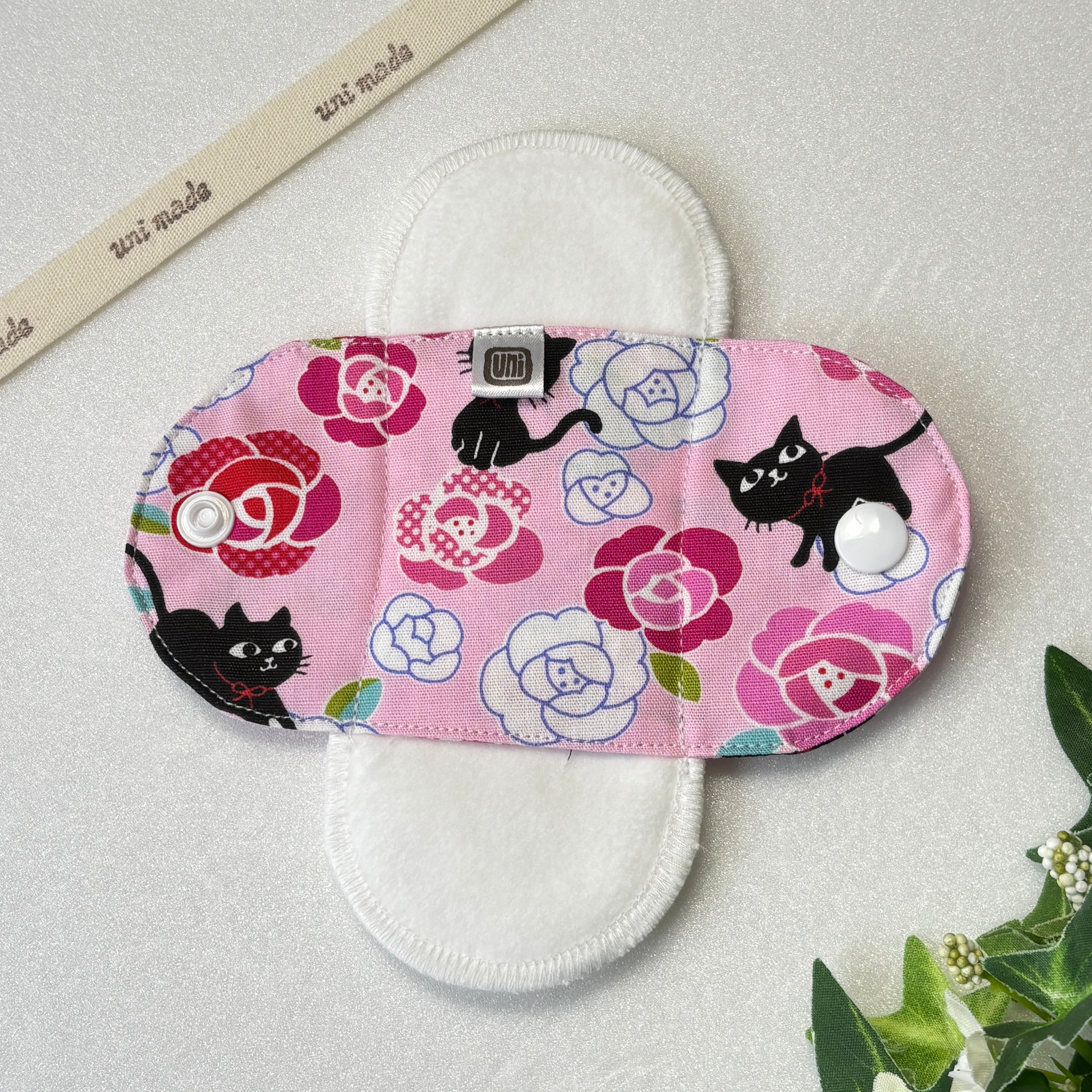 布ナプキン おりもの〜終わりかけ 温活 妊活 パンティライナー 15cm 黒猫とバラ ネコ アニマル 花柄フラワー ピンク系